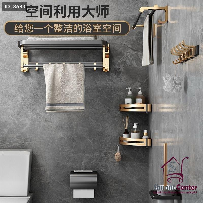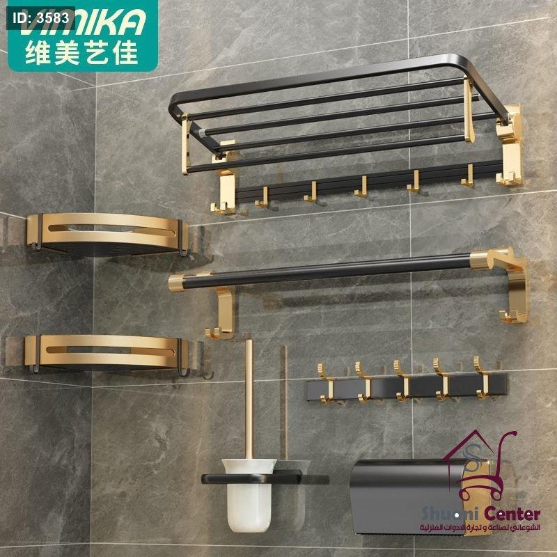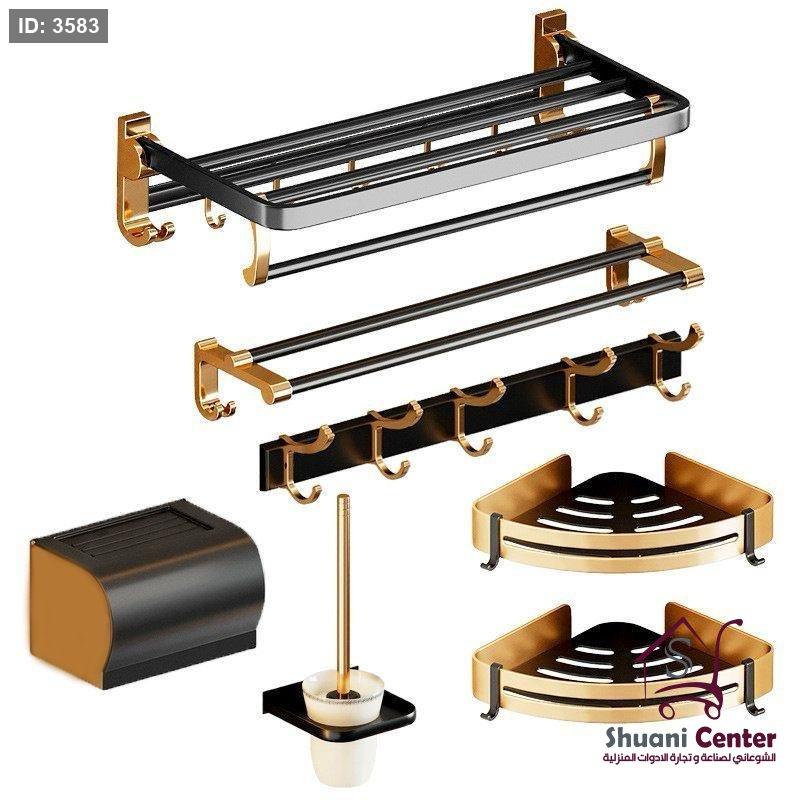 طقم اكسسوارات حمام اسود وذهبي فخم جدا