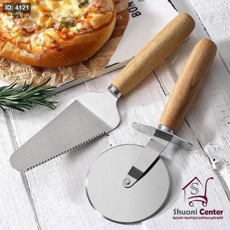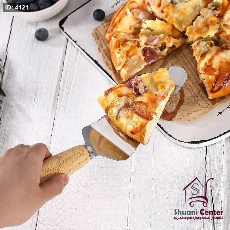 أداة تقديم البيتزا ستانلس ستيل بيد خشبية (مشحاف )