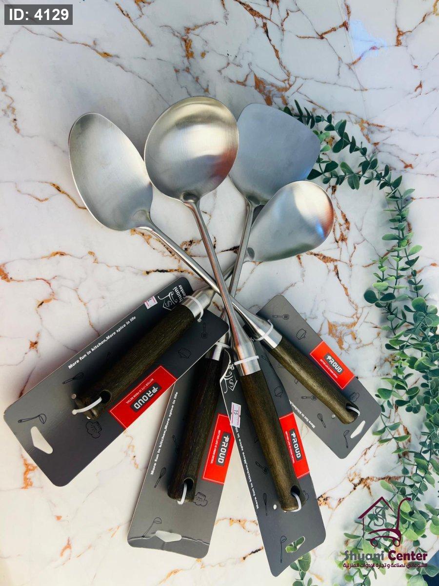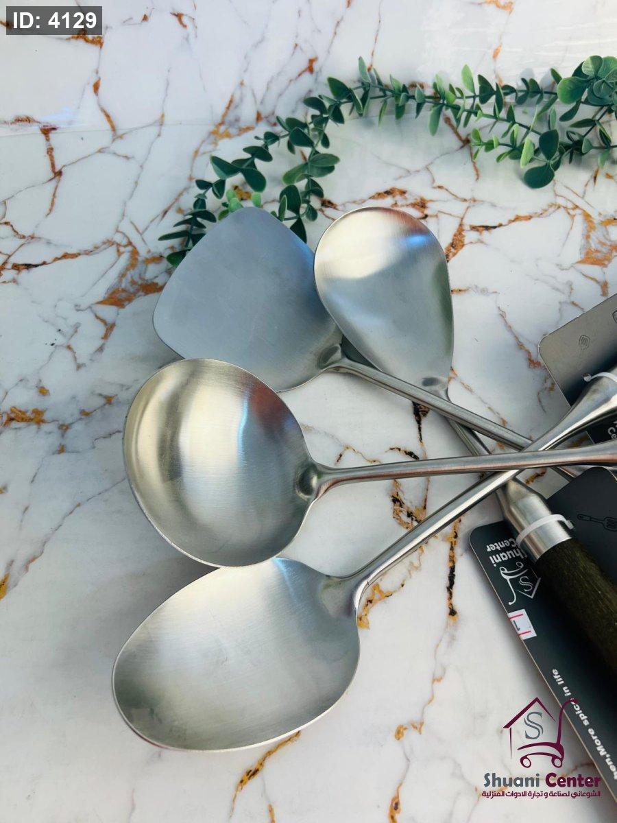 مغارف متعددة الوظائف ستانلس ستيل ثقيلة بيد خشبية
