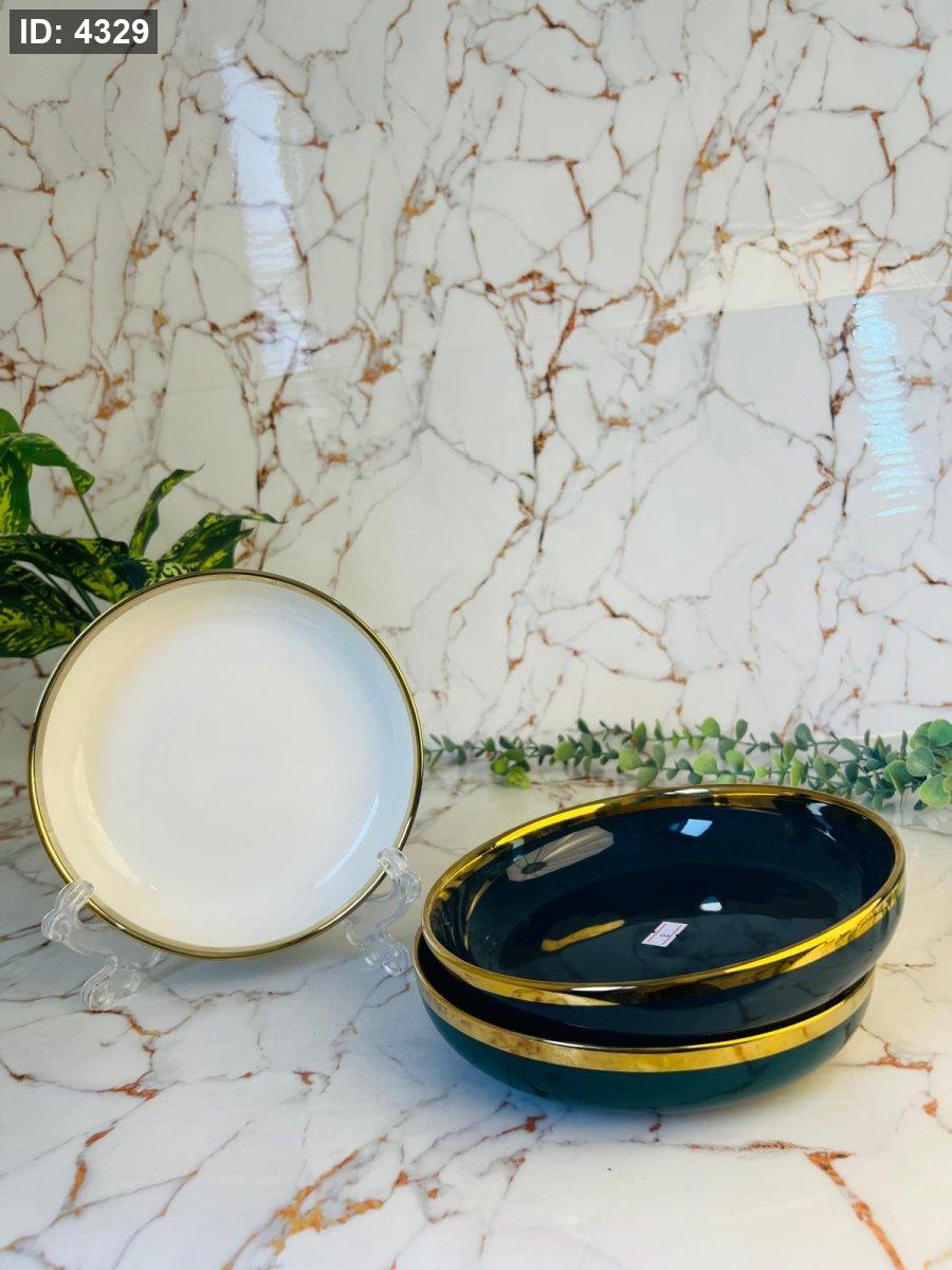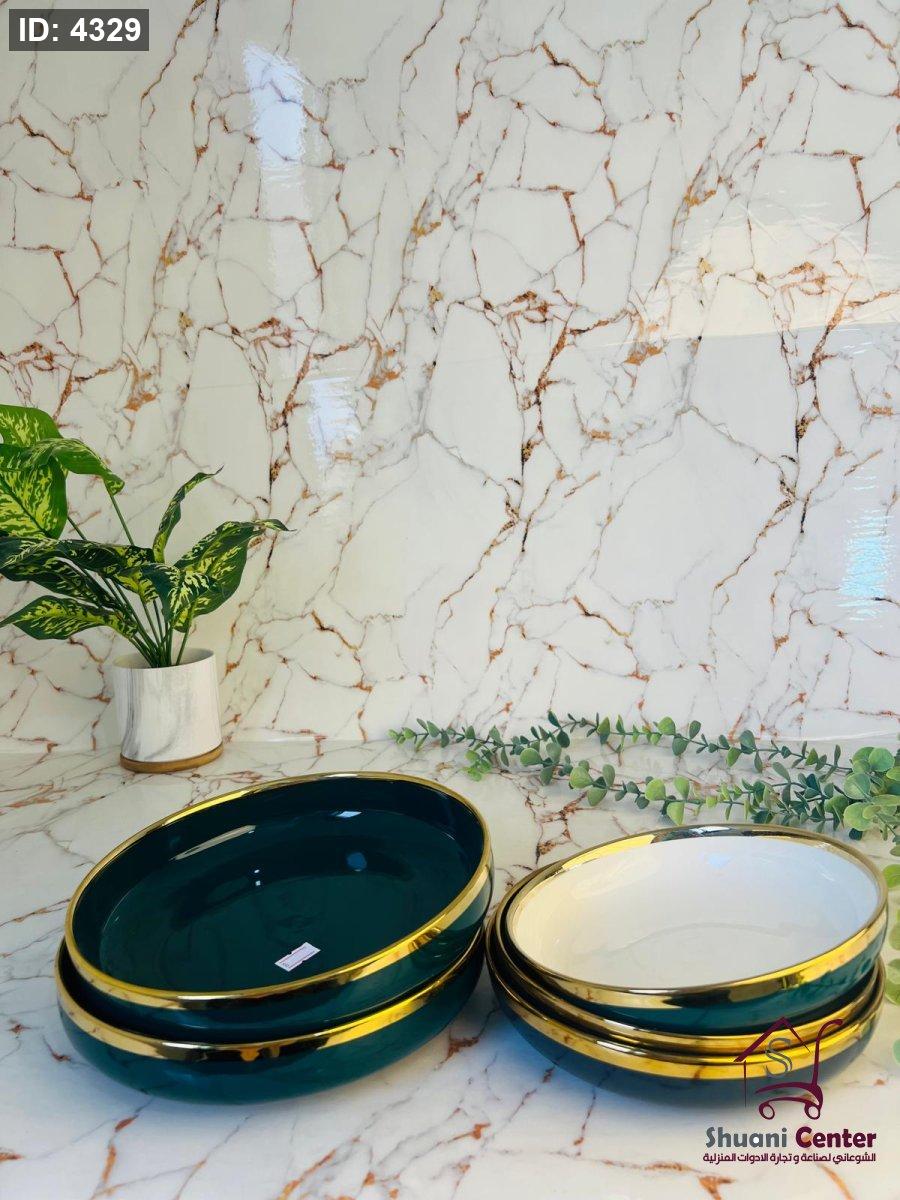 صحن تقديم مميز وانيق بحز ذهبي فخم متعدد الاحجام
