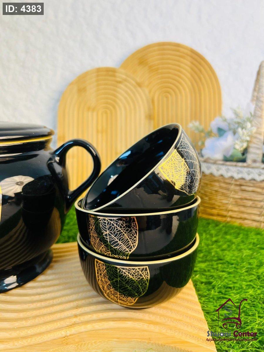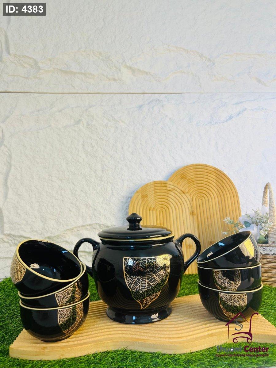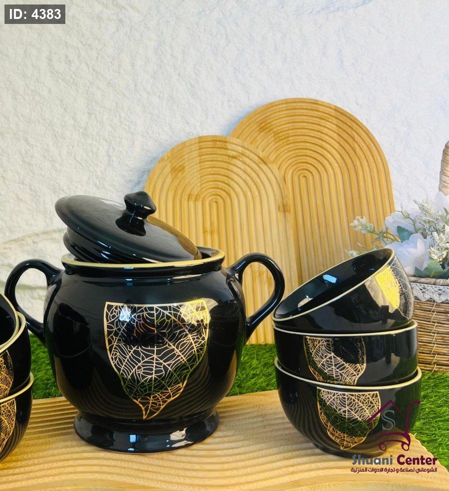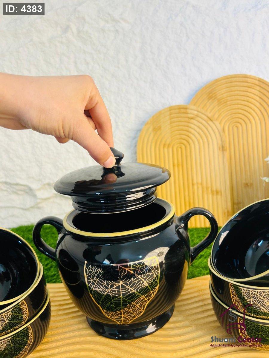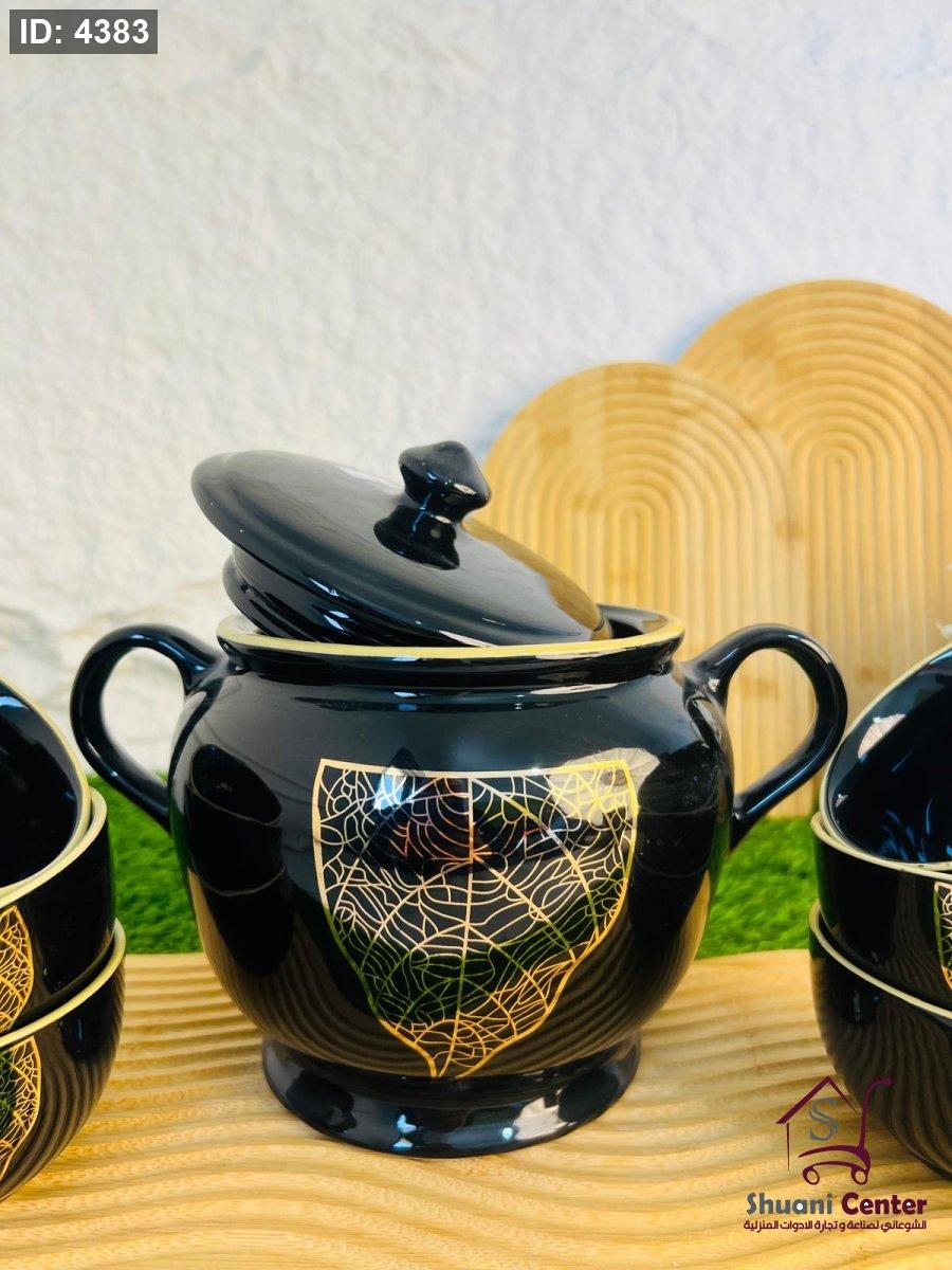 طقم طنجرة شوربا لون اسود وذهبي مع 6 زبادي مميزة جدا لاصحاب الذوق الرفيع