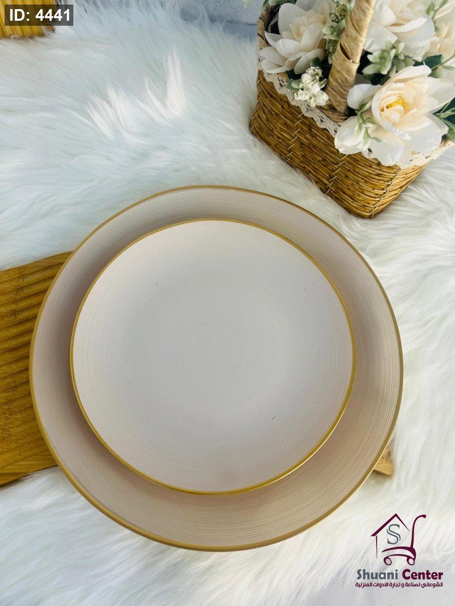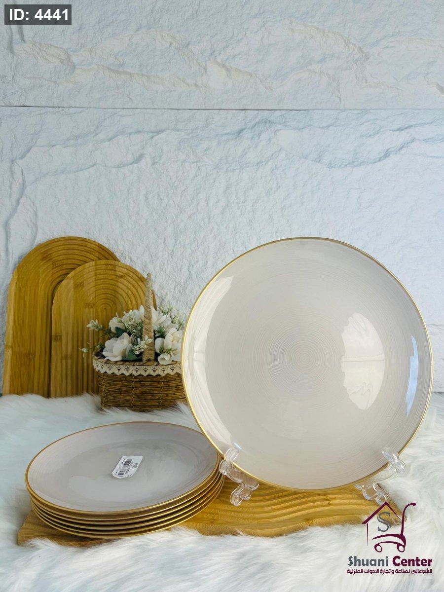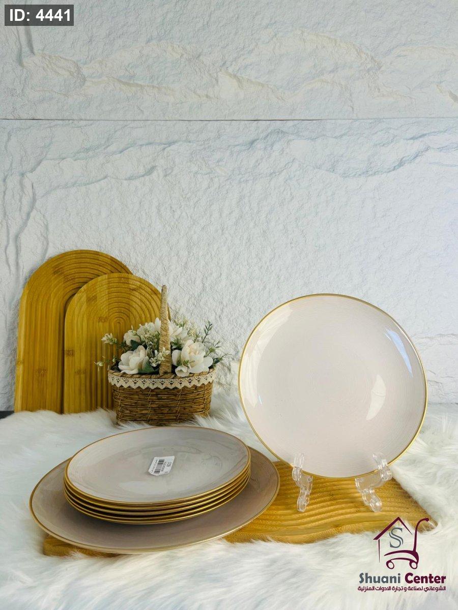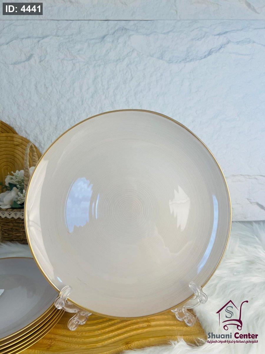 طقم صحون متعدد الاستخدام بيج بحز ذهبي ( تقديم فواكه) مكون من صحن تقديم كبير و6صحون حجم متوسط مميز وانيق