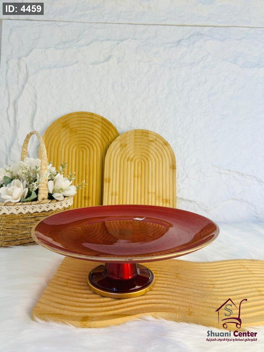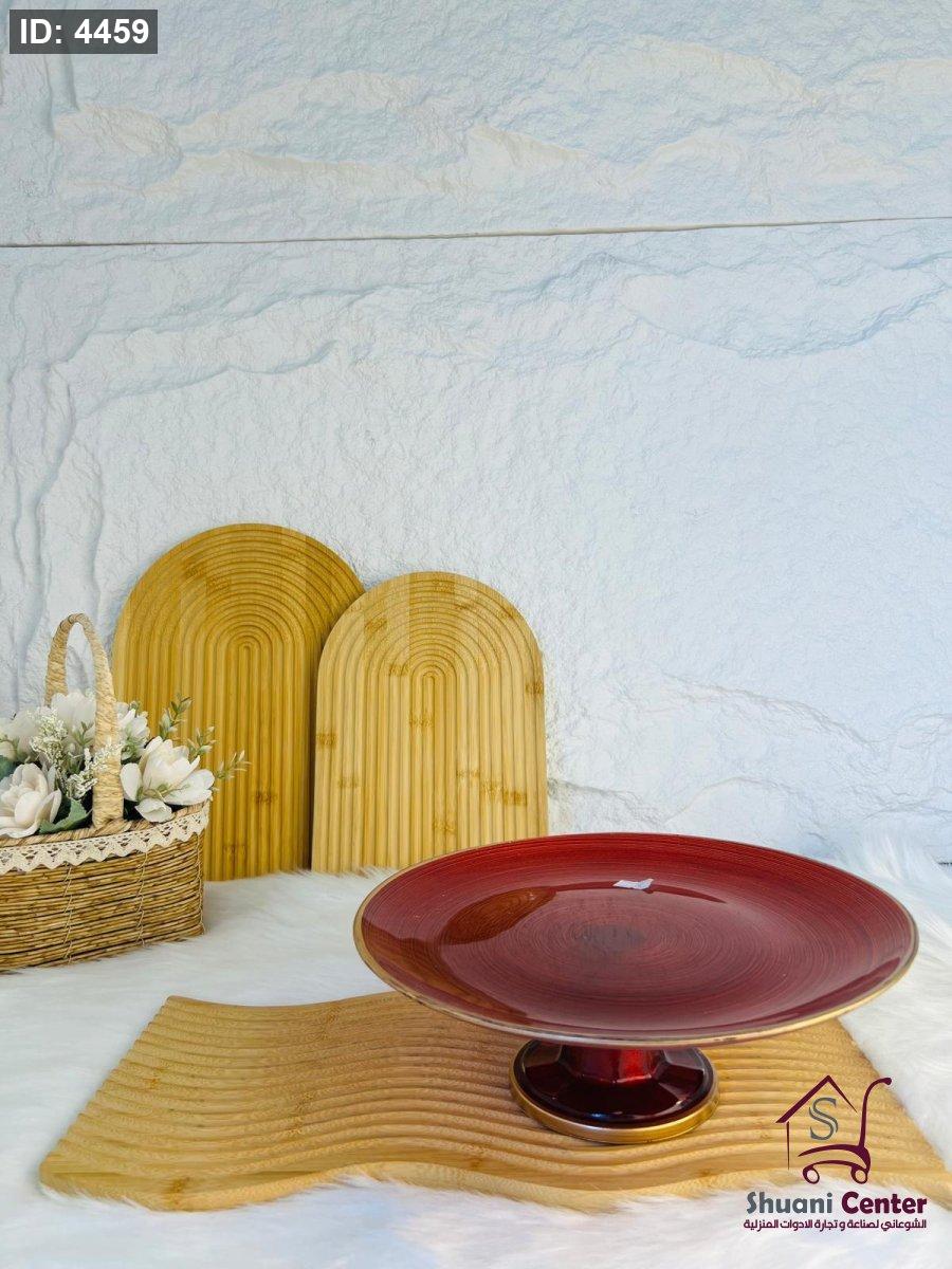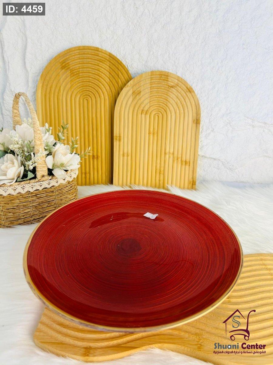 صحن تقديم كبير باللون البرجندي بحز ذهبي بقاعدة مميز وانيق وراقي جدا لاصحاب الذوق الرفيع