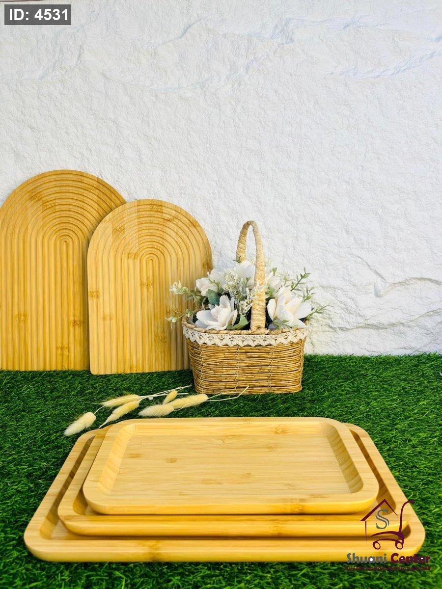 طقم صحون تقديم خشبي متعدد الاحجام والاستخدام أنيق وجذاب