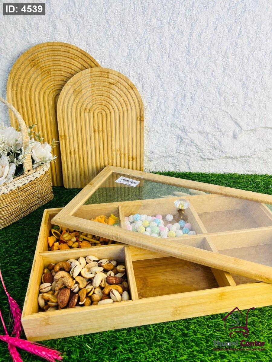 مضيفة خشبية مستطيلة مقسمة الى6وحدات مميزة جدا بغطاء خشبي واكريلك أنيقة وفخمة لاصحاب الذوق العالي
