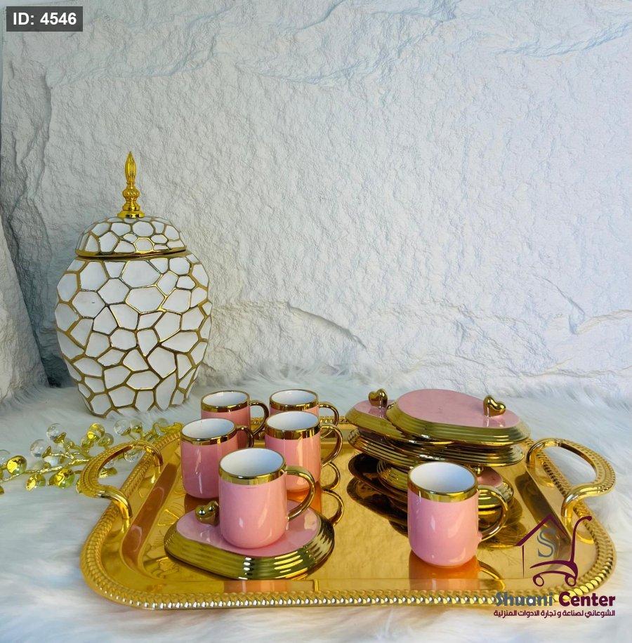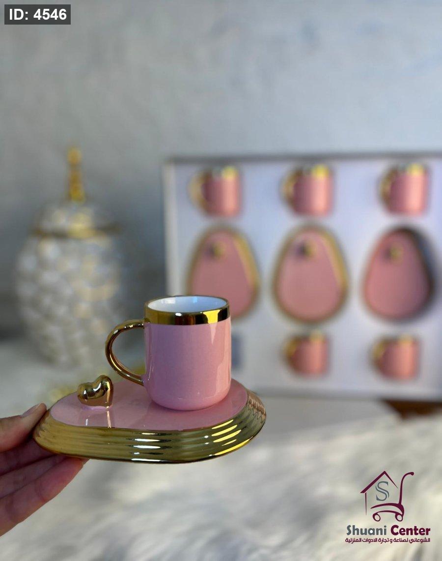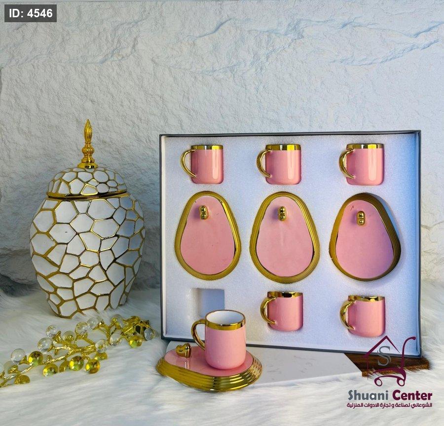 طقم فناجين قهوة 12قطعة زهري بحز ذهبي مميز وانيق وراقي جدا
