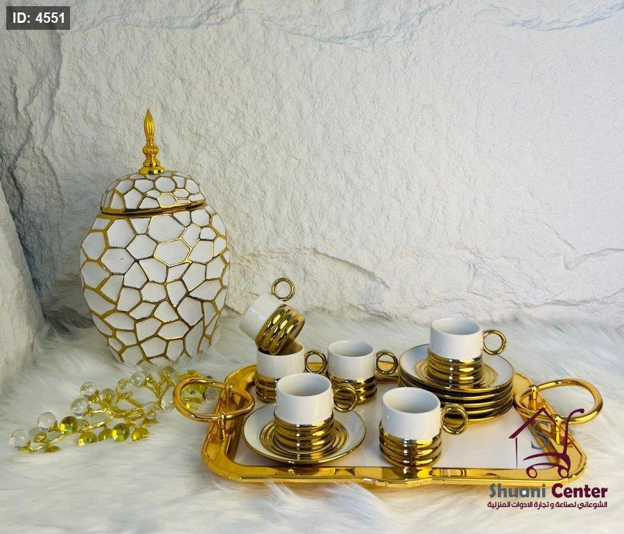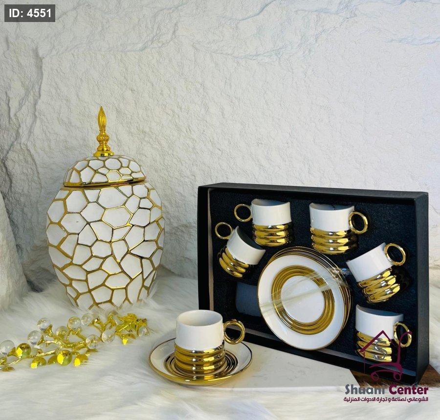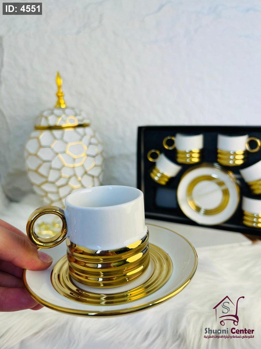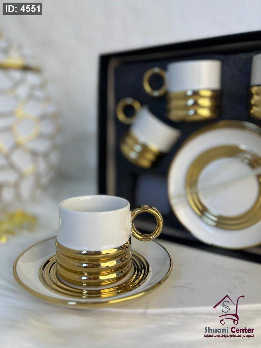 طقم فناجين قهوة ابيض وذهبي 12قطعة فخم جدا لاصحاب الذوق الرفيع