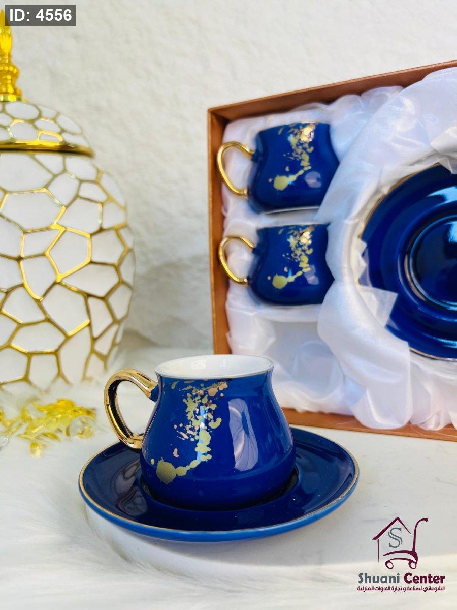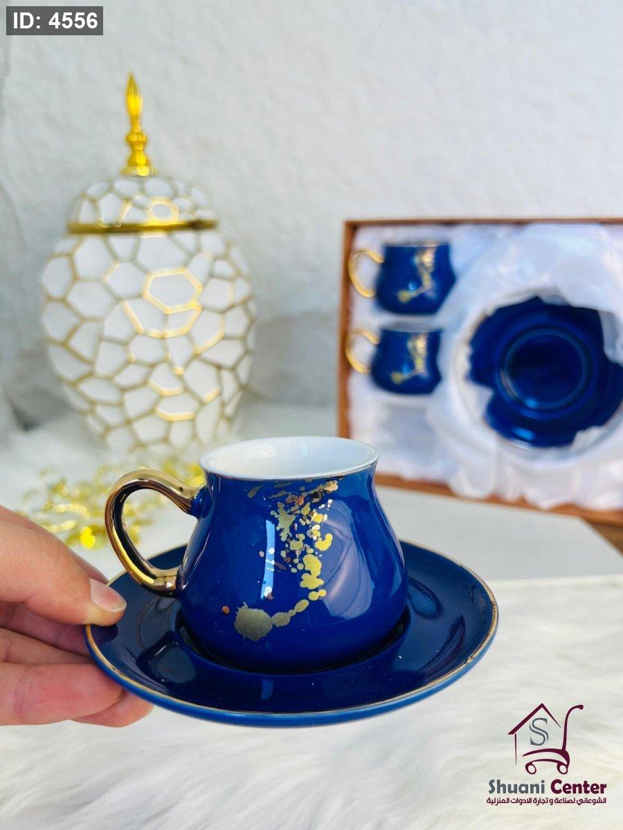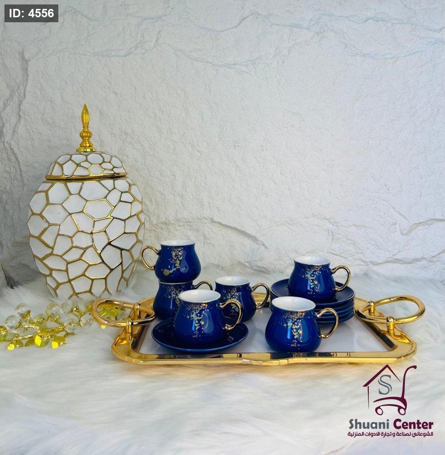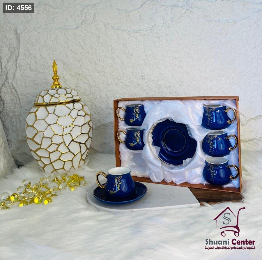 طقم فناجين قهوة نيلي وذهبي 12قطعة فخم جدا لاصحاب الذوق الرفيع