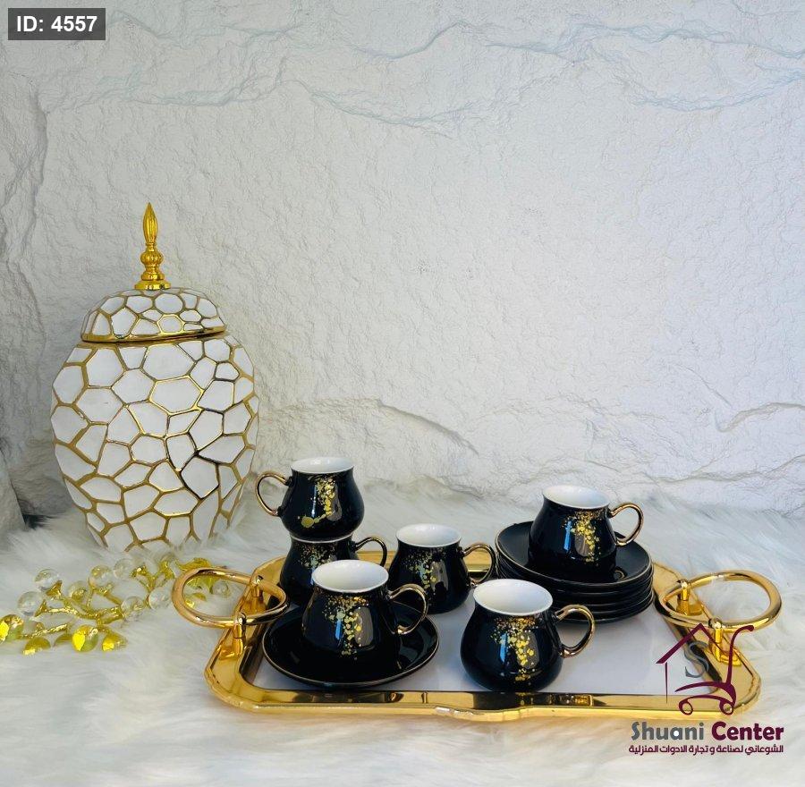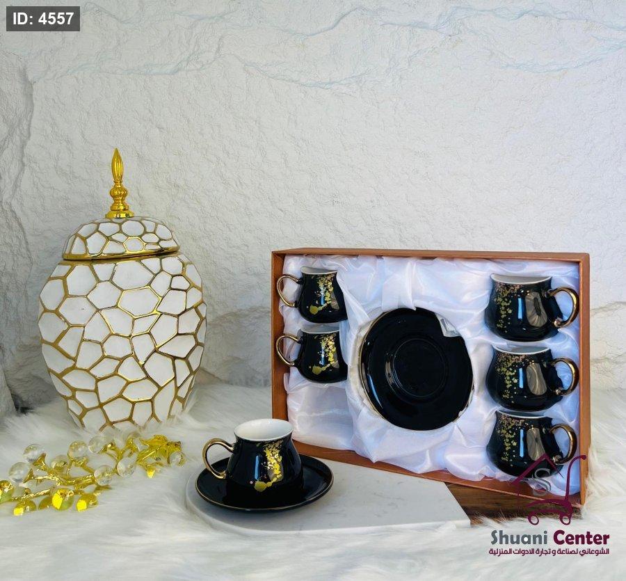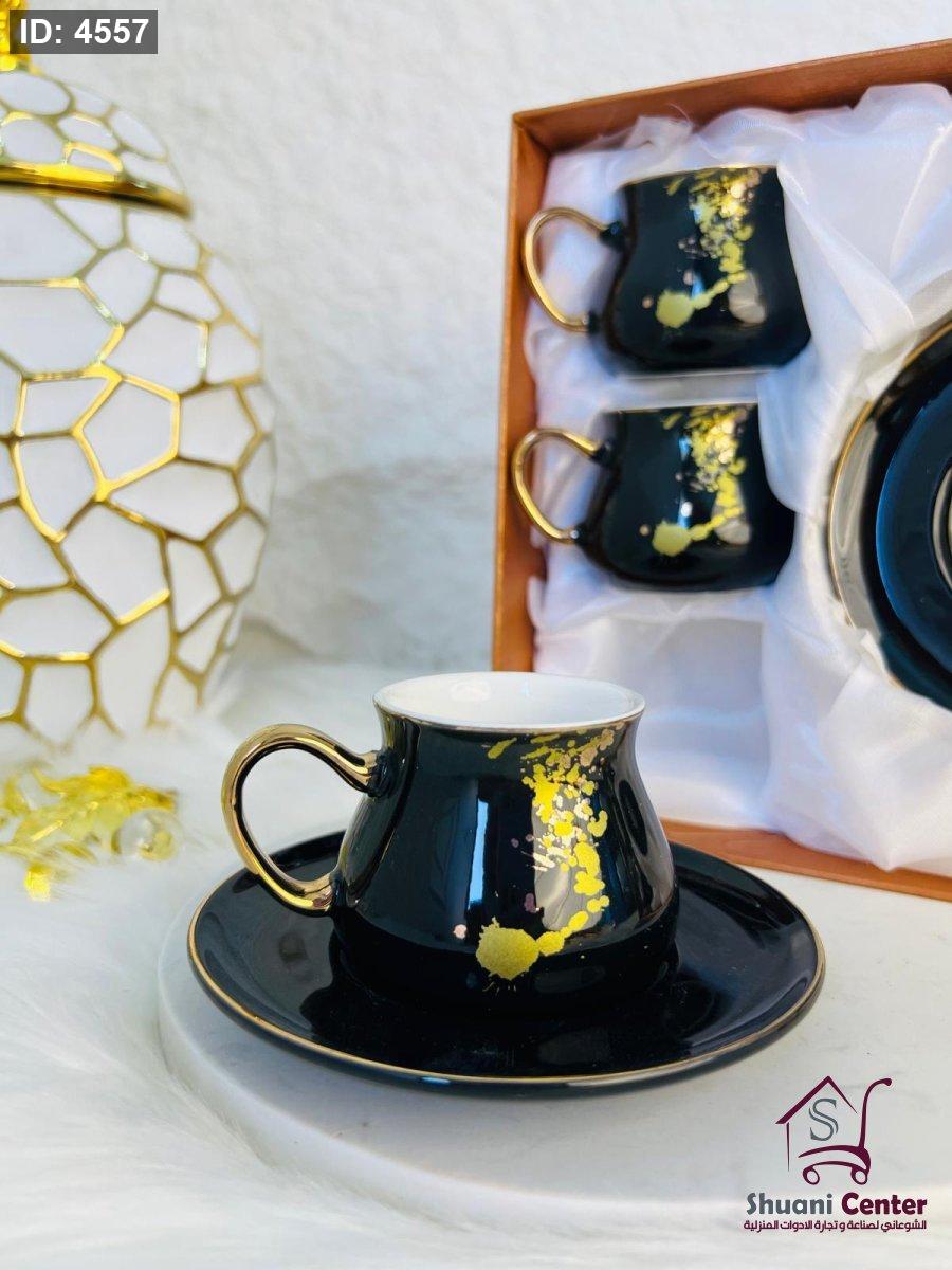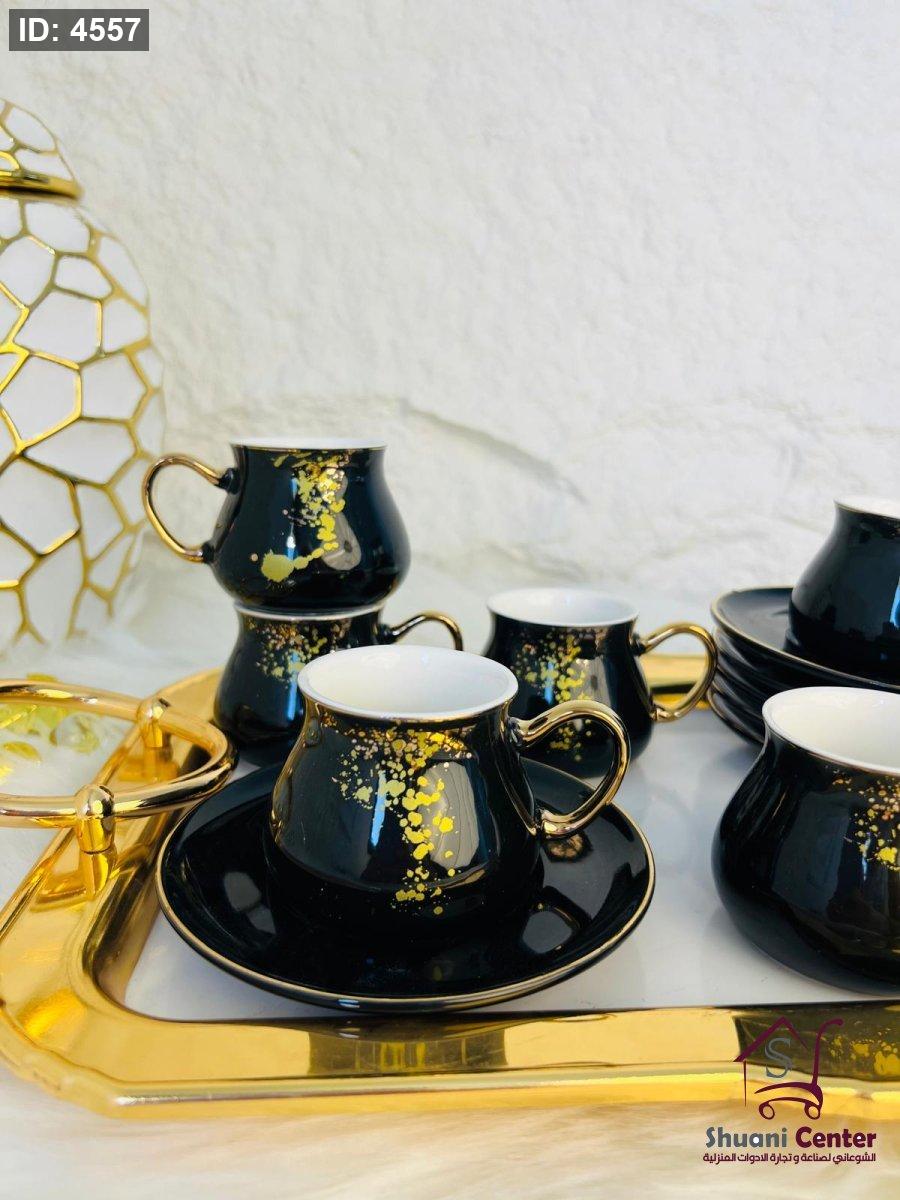 طقم فناجين قهوة اسود وذهبي 12قطعة فخم جدا لاصحاب الذوق الرفيع