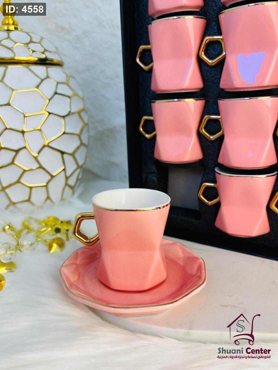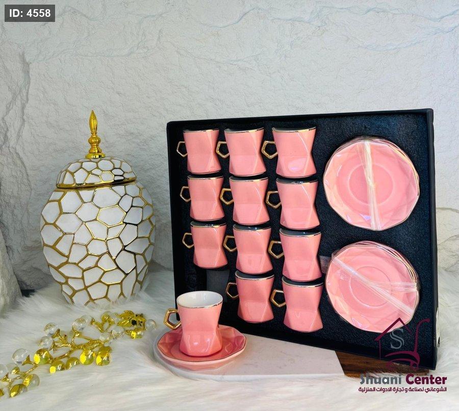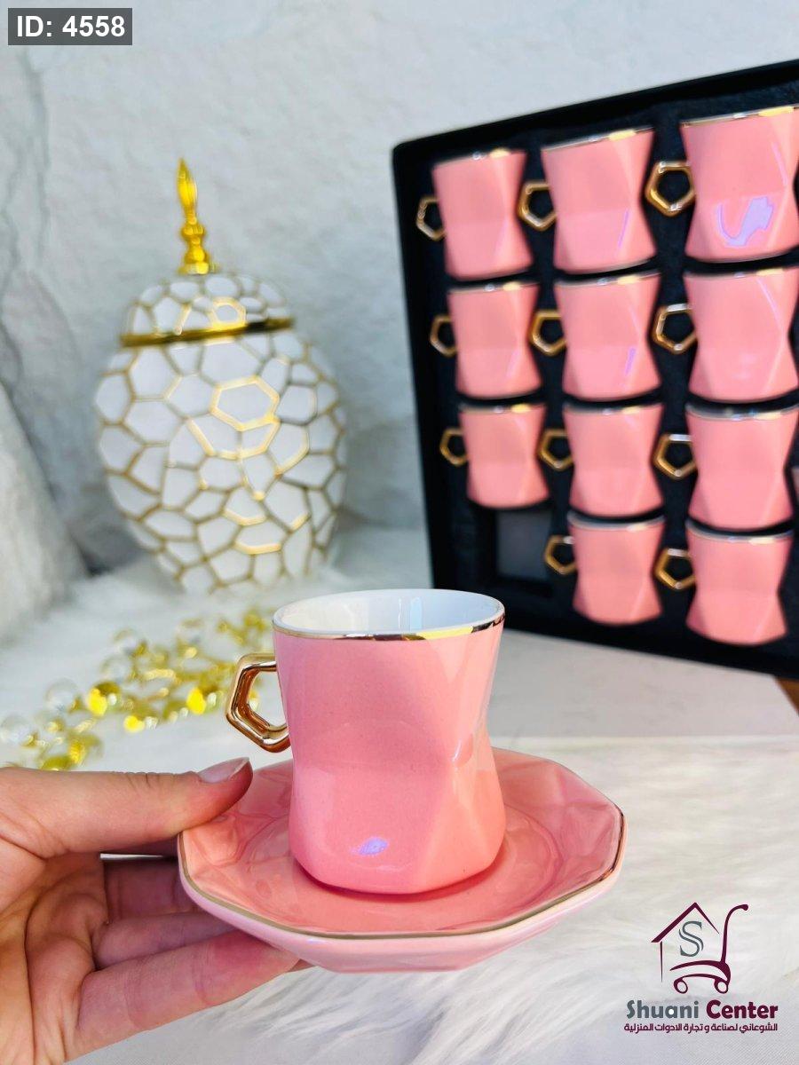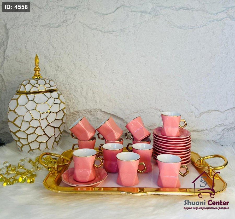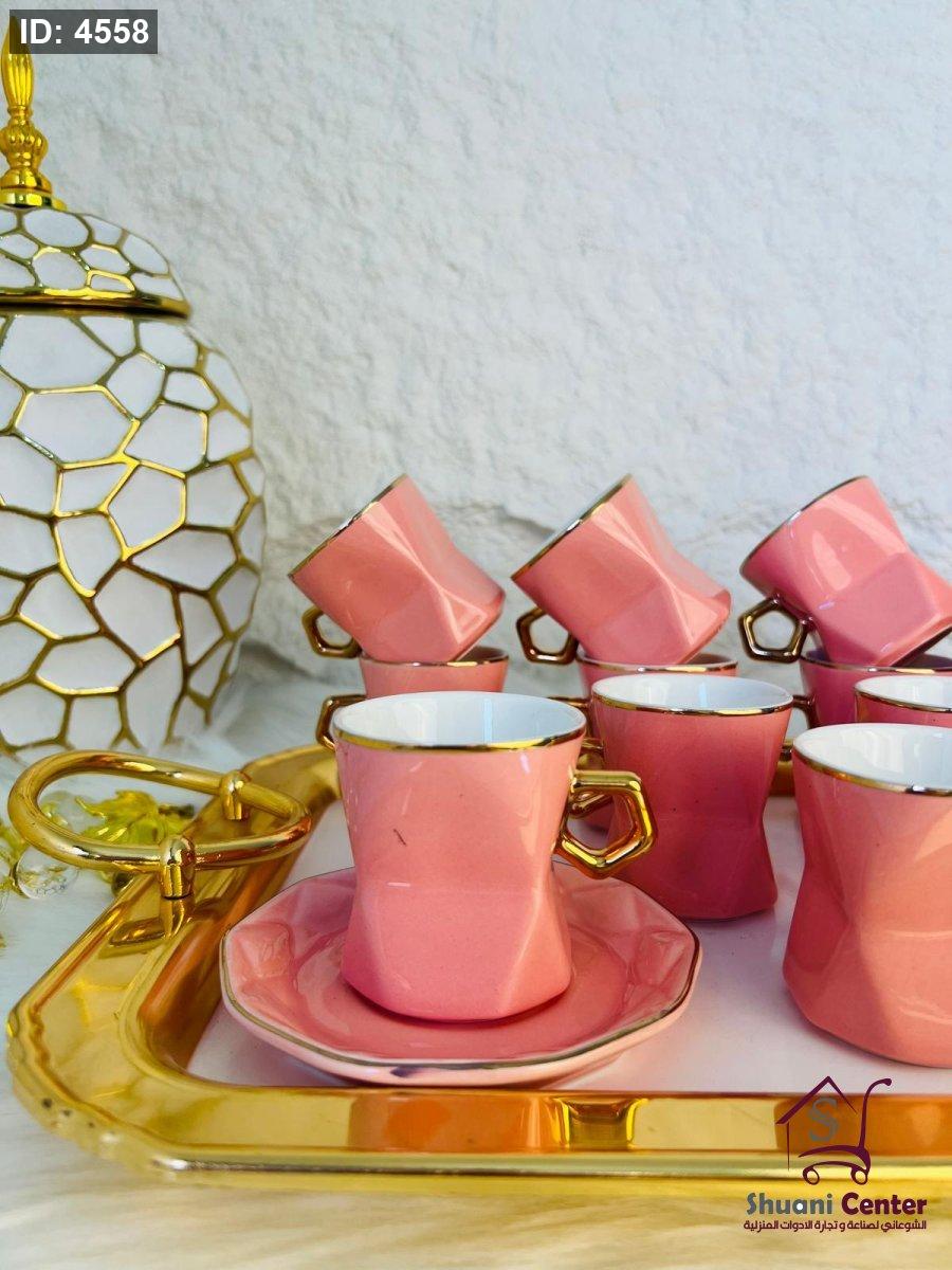 طقم فناجين قهوة زهري وذهبي 24 قطعة مميز وانيق وراقي جدا لاصحاب الذوق الرفيع