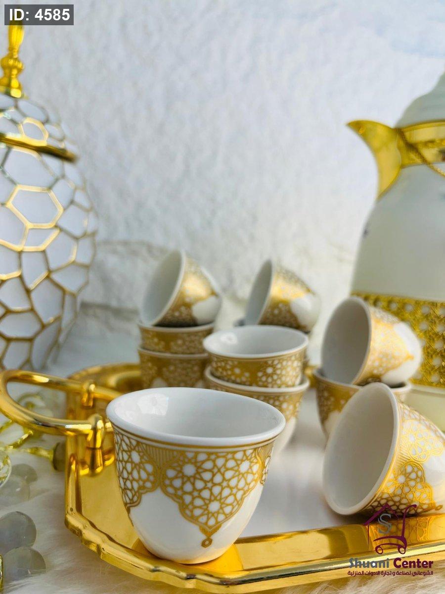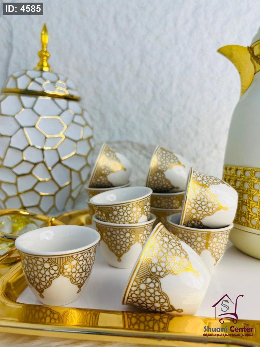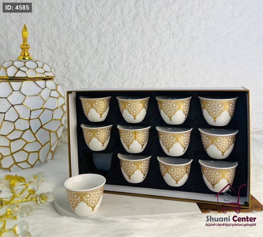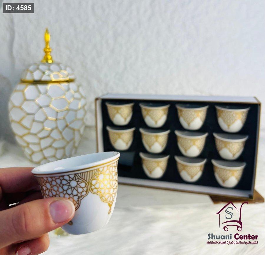 طقم فناجين سادة ابيض وذهبي 12قطعة فخمة ومميزة لاصحاب الذوق الرفيع