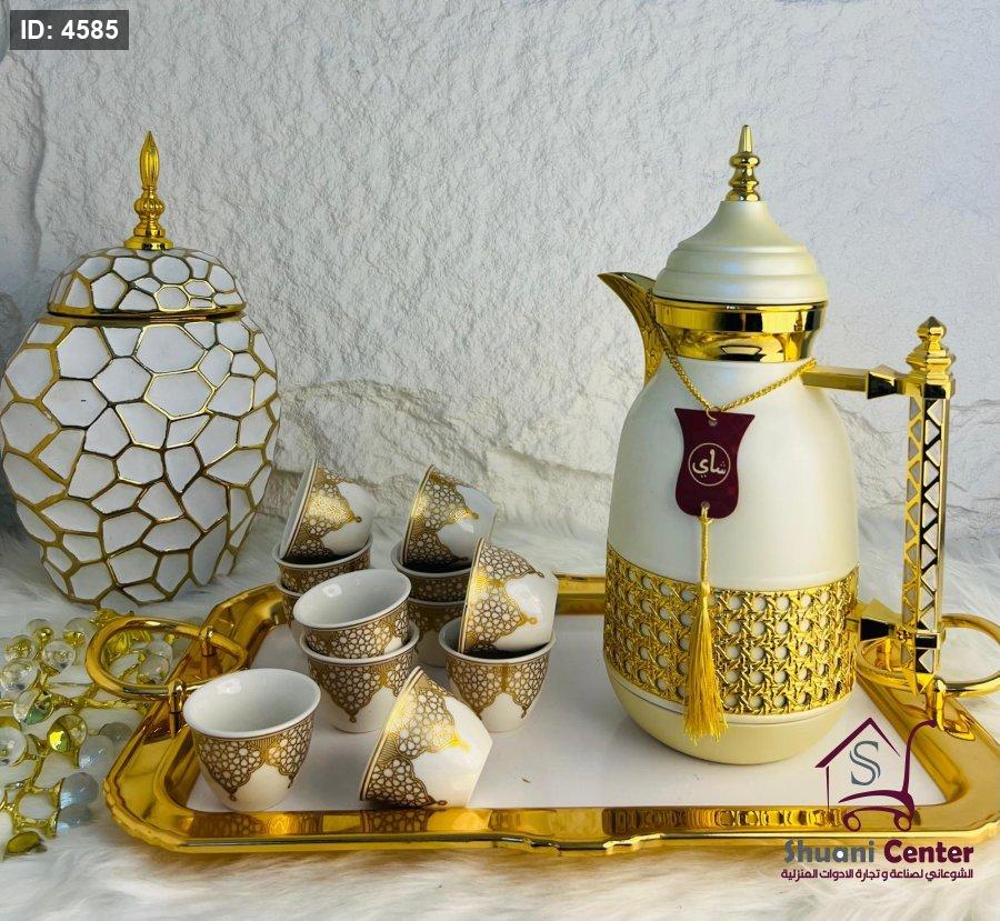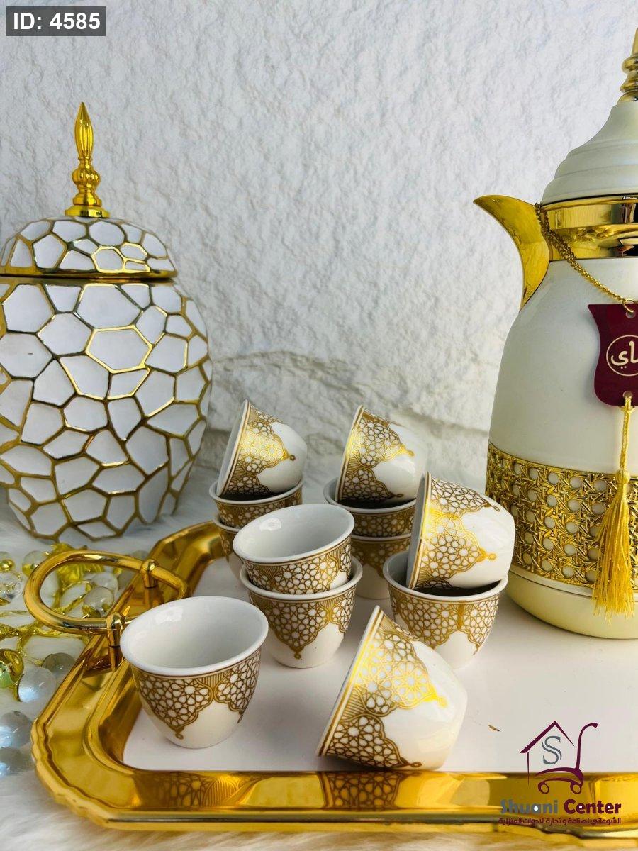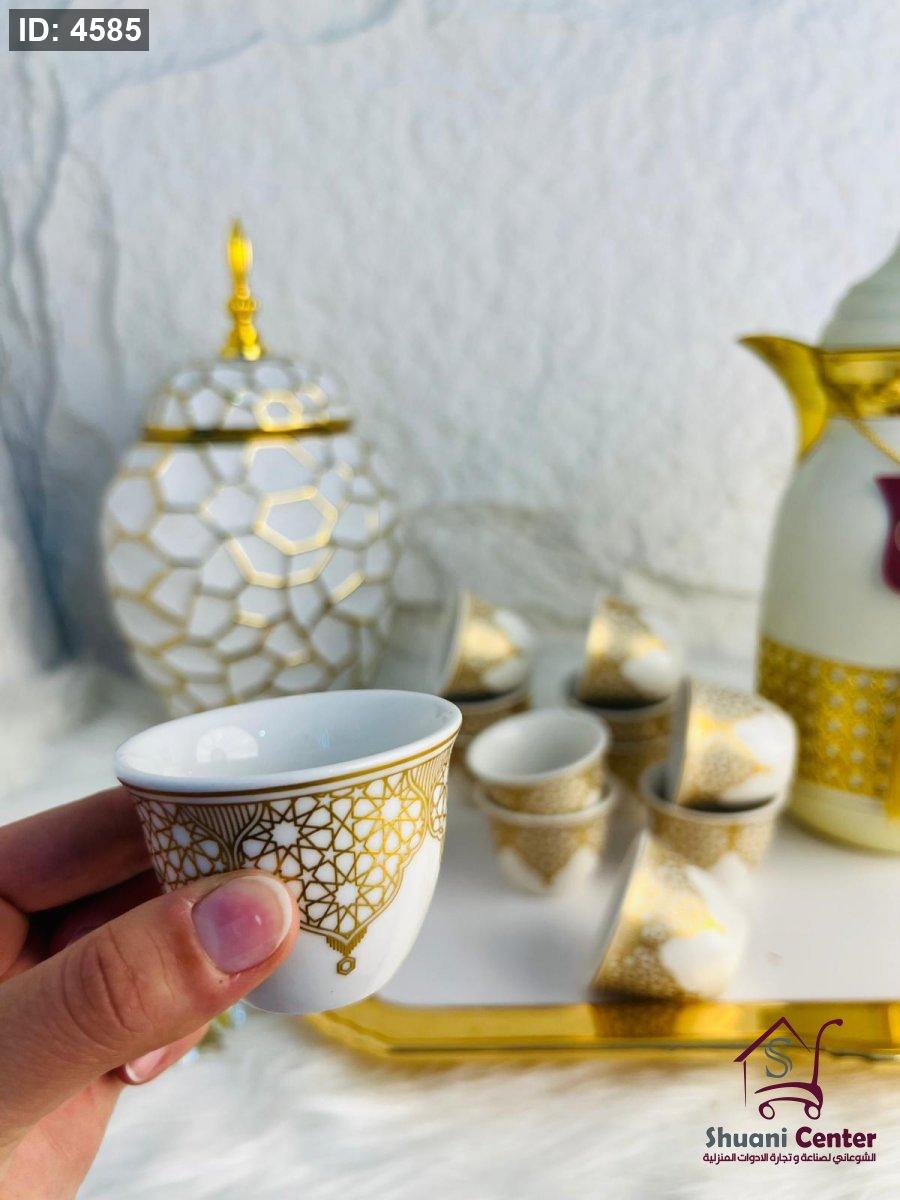 طقم فناجين سادة ابيض وذهبي 12قطعة فخمة ومميزة لاصحاب الذوق الرفيع
