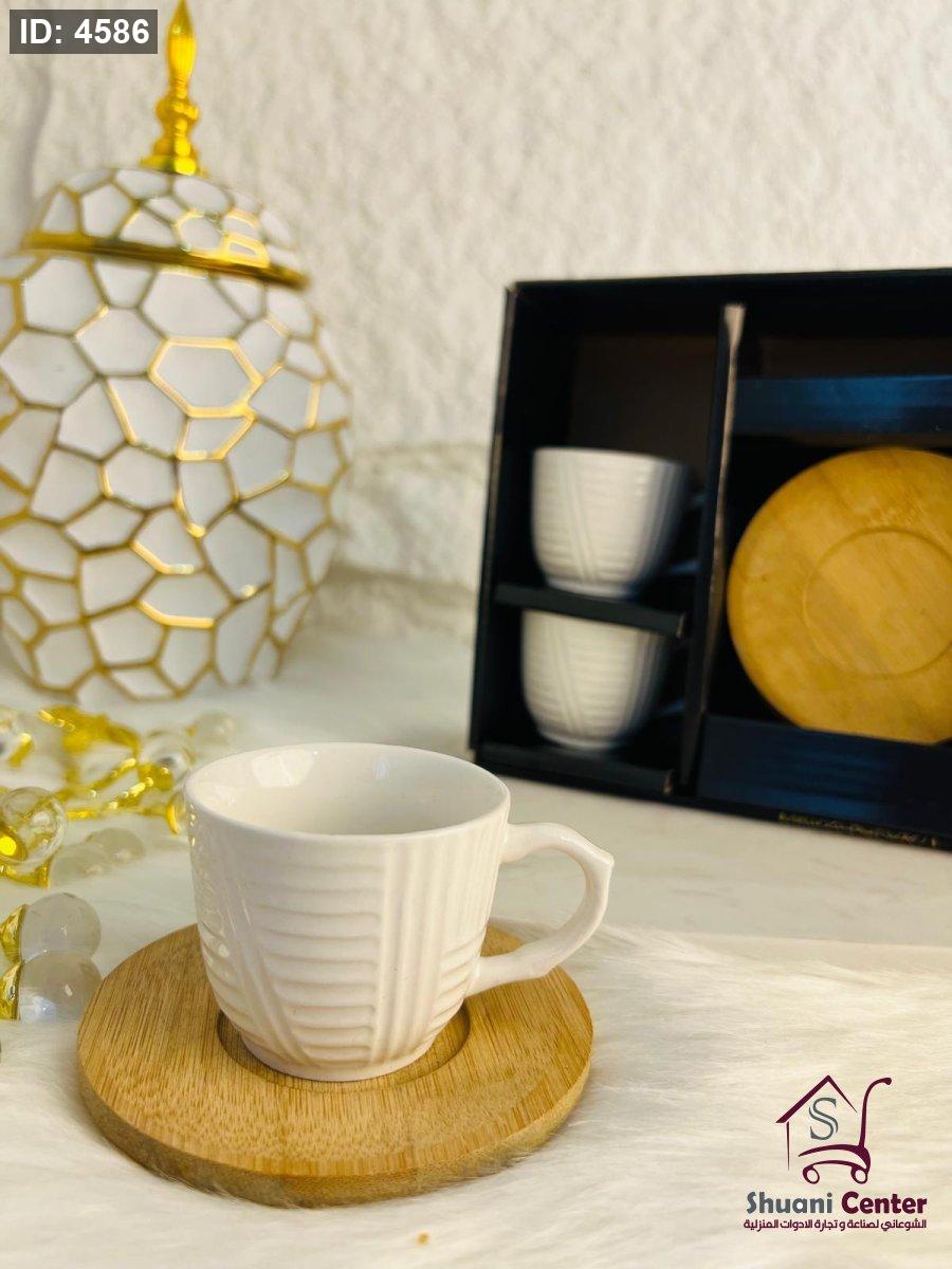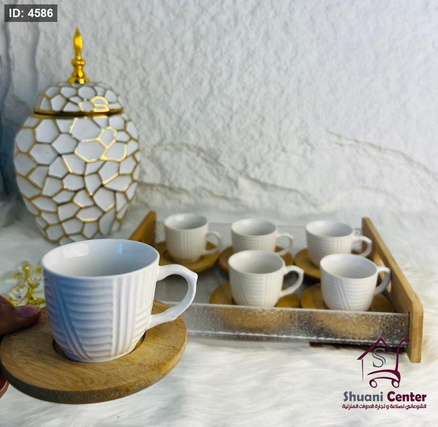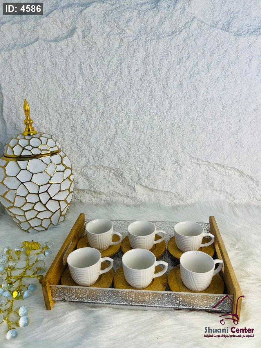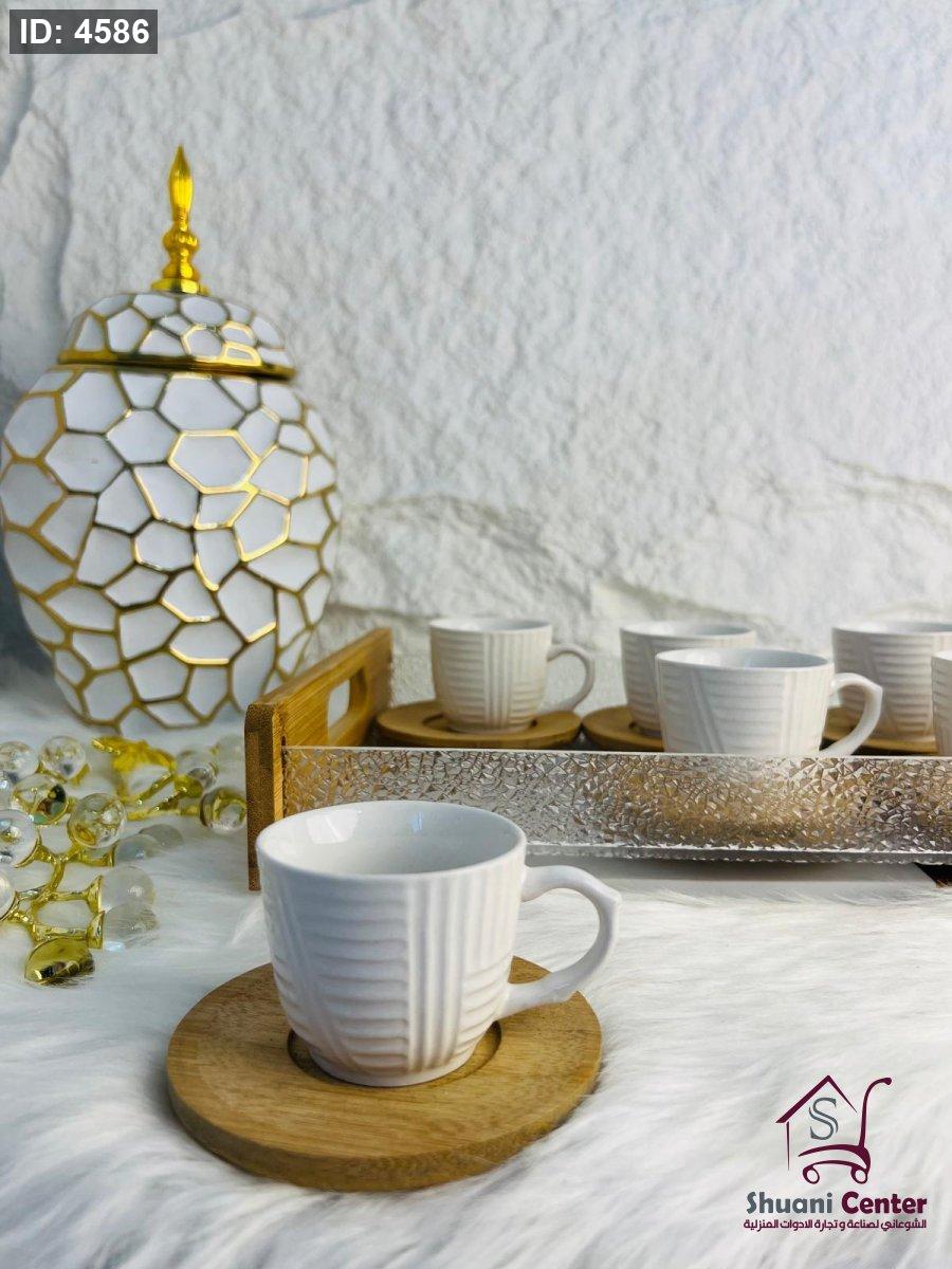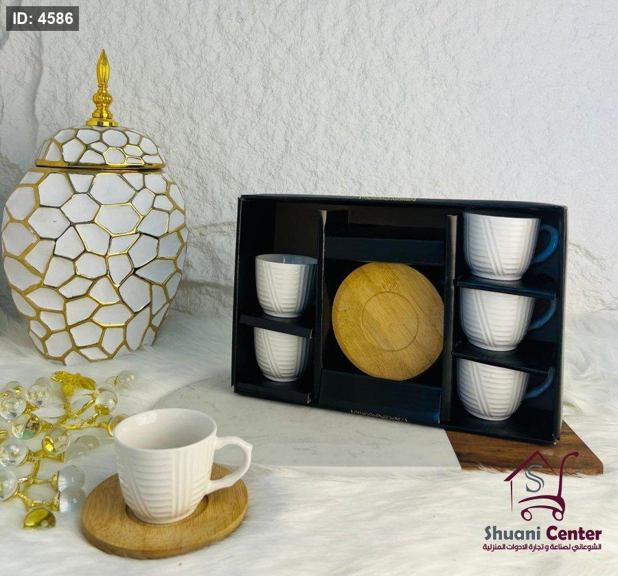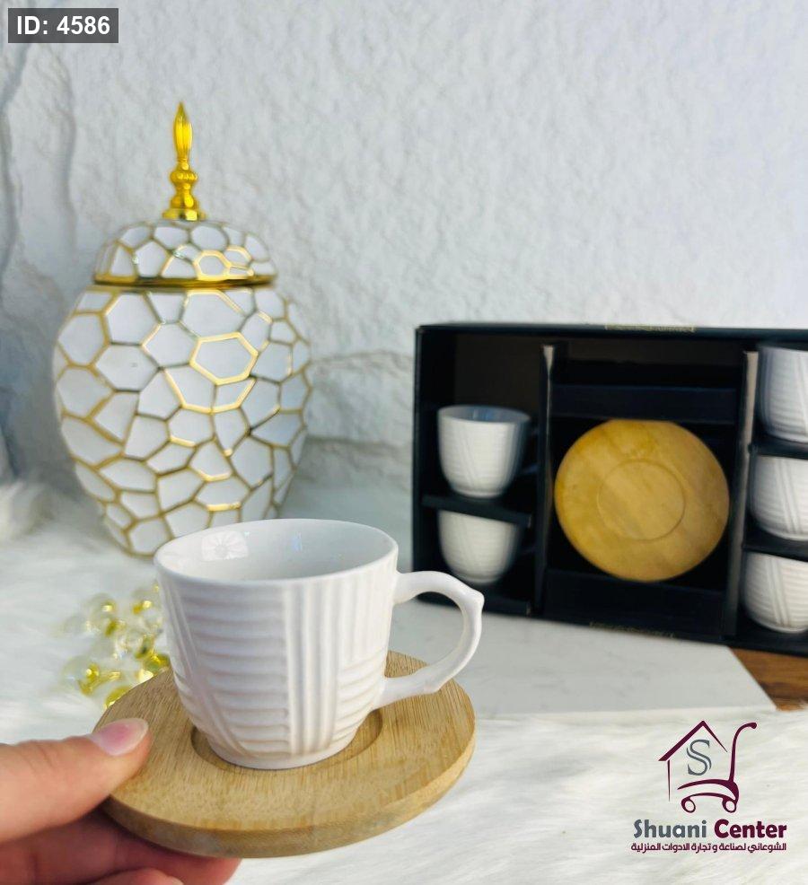 طقم فناجين قهوة ابيض وخشي مختلف وعصري وانيق يتكون من 12قطعة