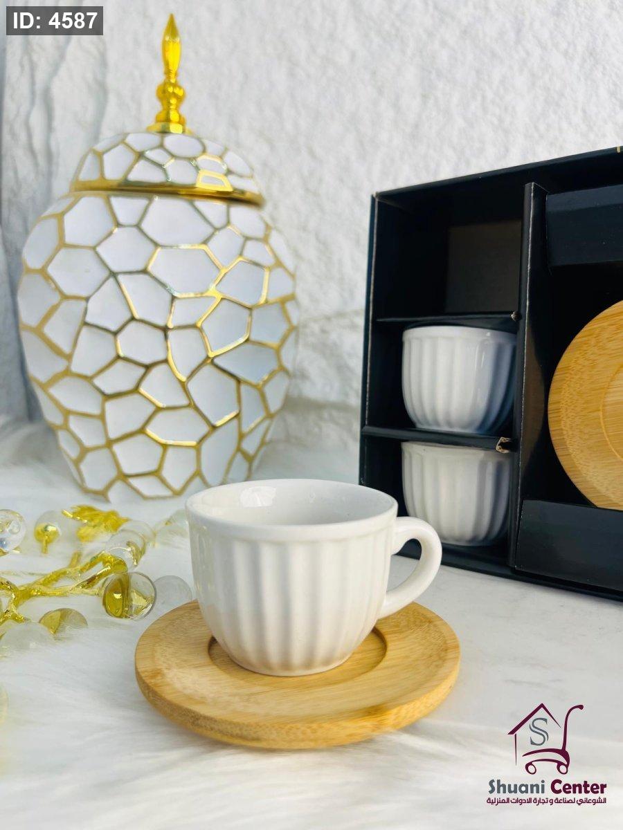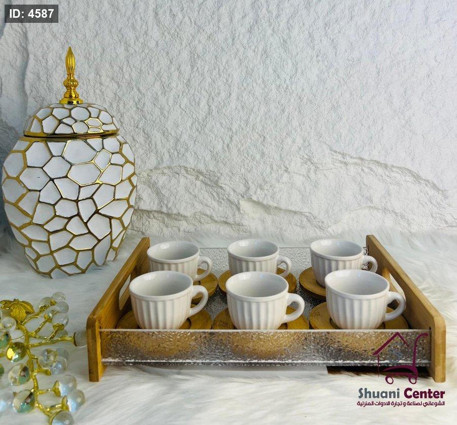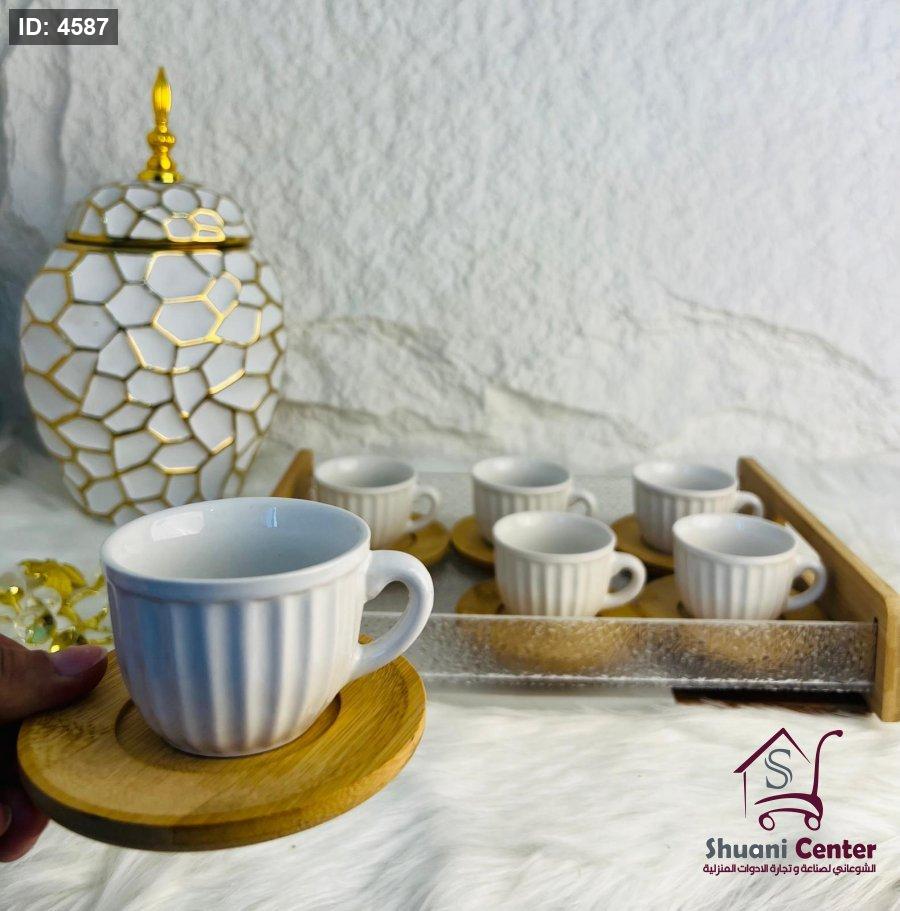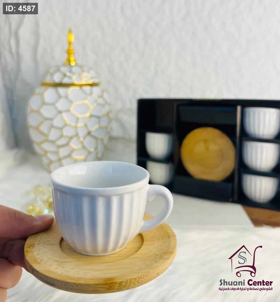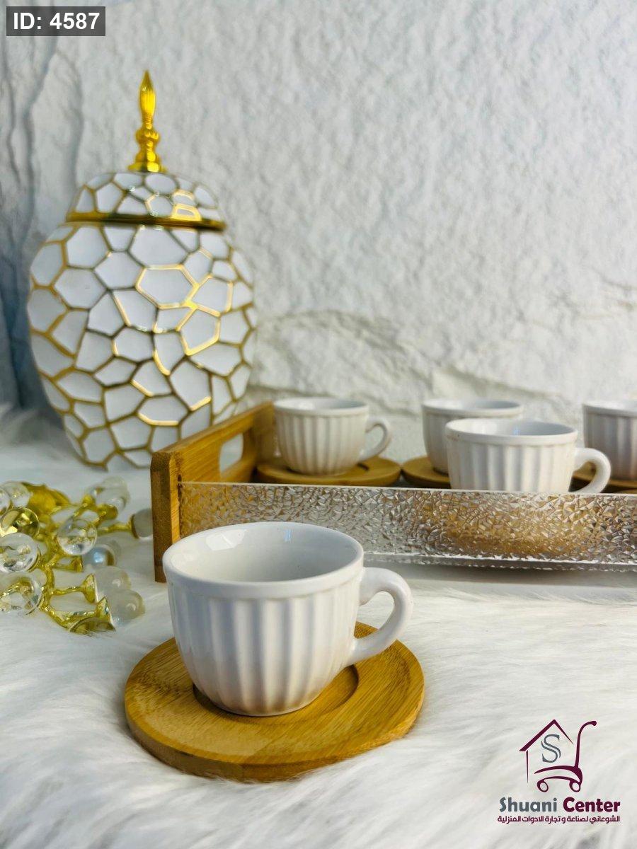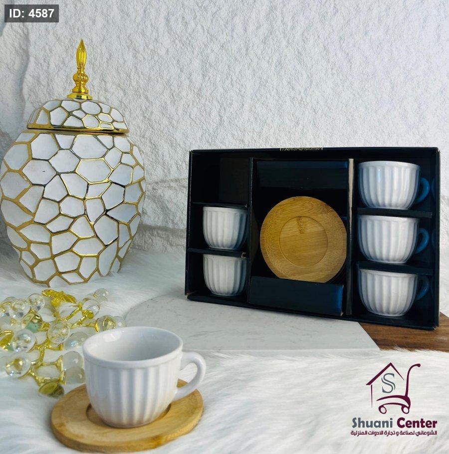 طقم فناجين قهوة ابيض وخشي مختلف وعصري وانيق يتكون من 12قطعة فخمة ومميزة