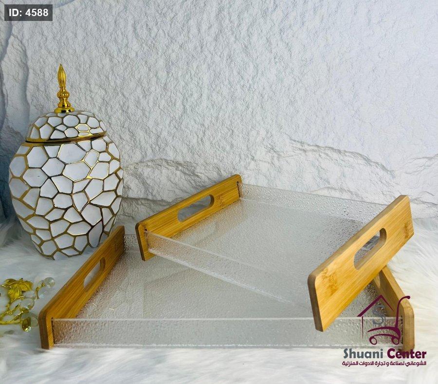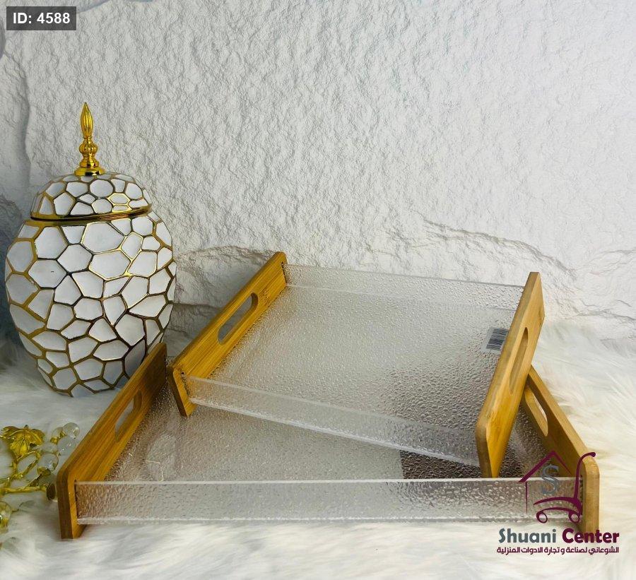 طقم صواني مميز اكروليك بايدي خشبية مميزة ومختلفة انيقة وعصرية تناسب جميع الاذواق