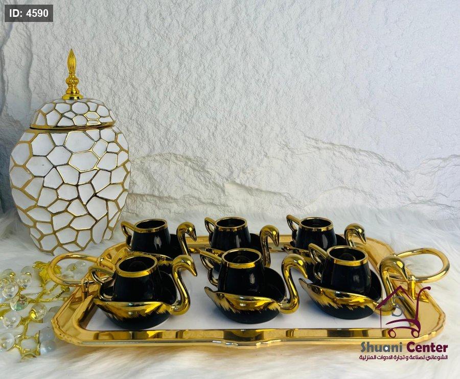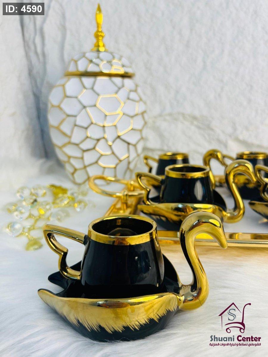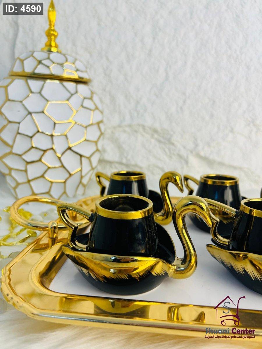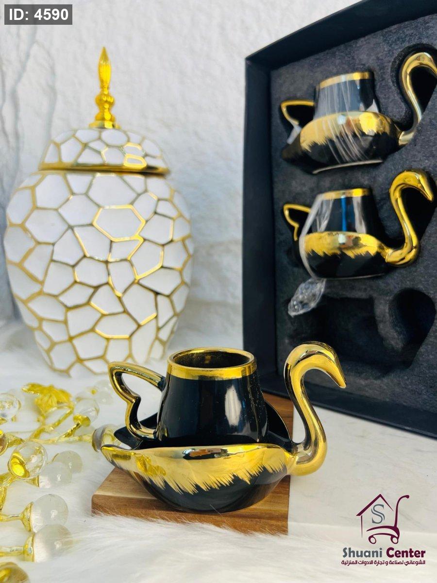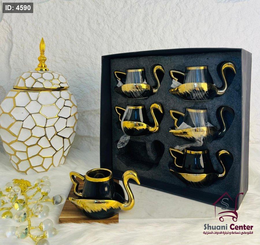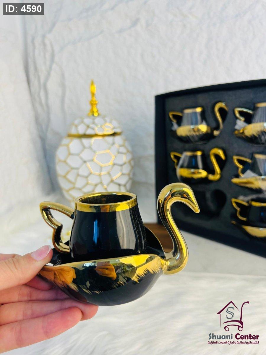 طقم فناجين قهوة اسود وذهبي على شكل بطة يتكون من 12قطعة فخمة