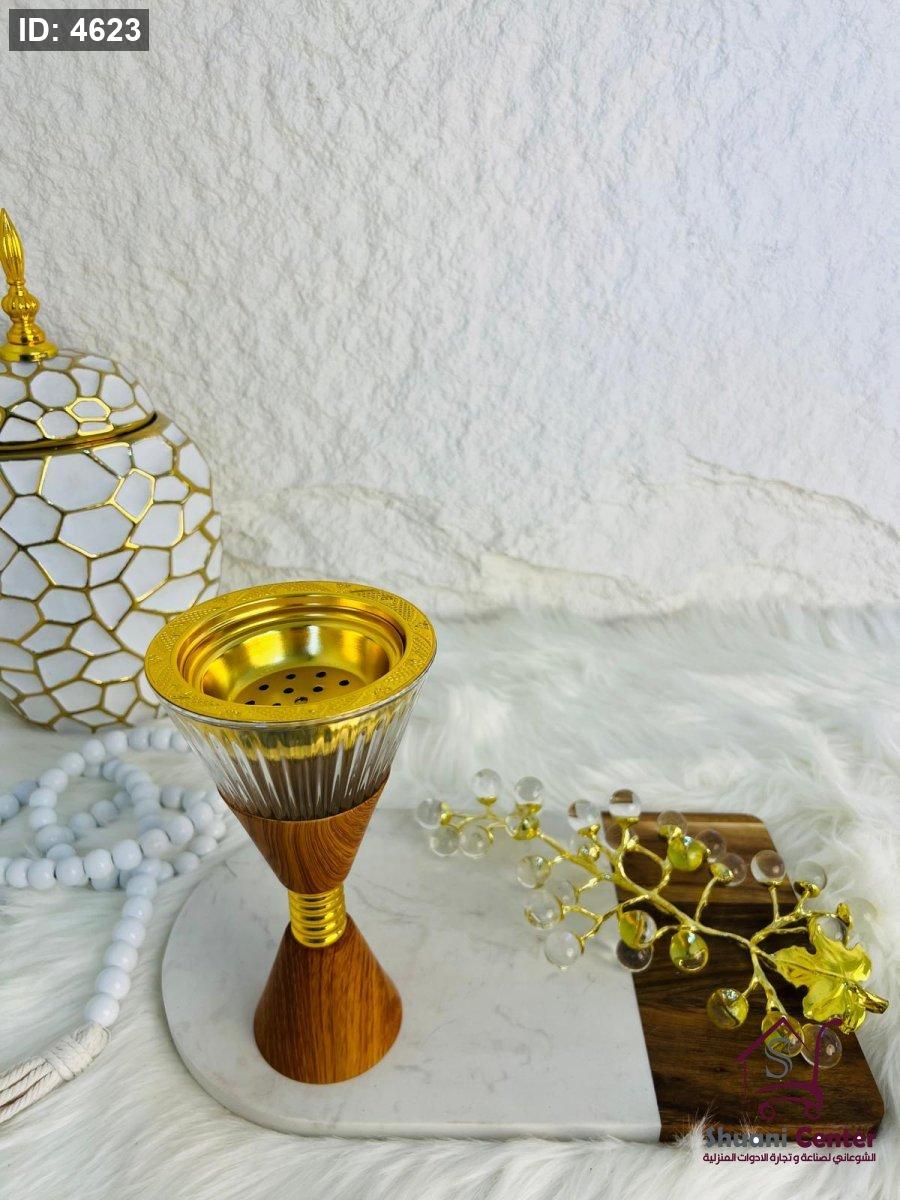 مبخرة مميزة زجاجية و خشبية ومدمج فيها اللون الذهبي بطريقة عصرية ومبتكرة لاصحاب الذوق العالي جدا