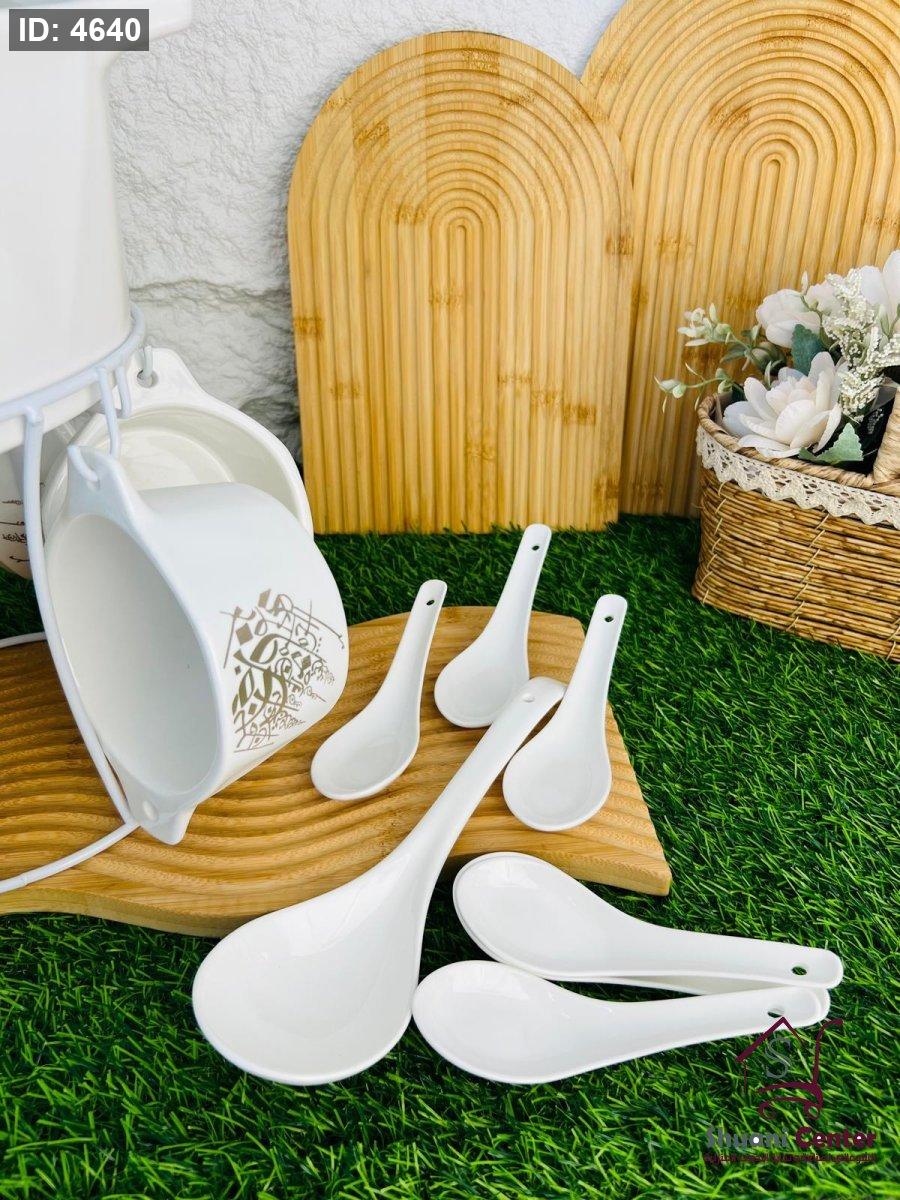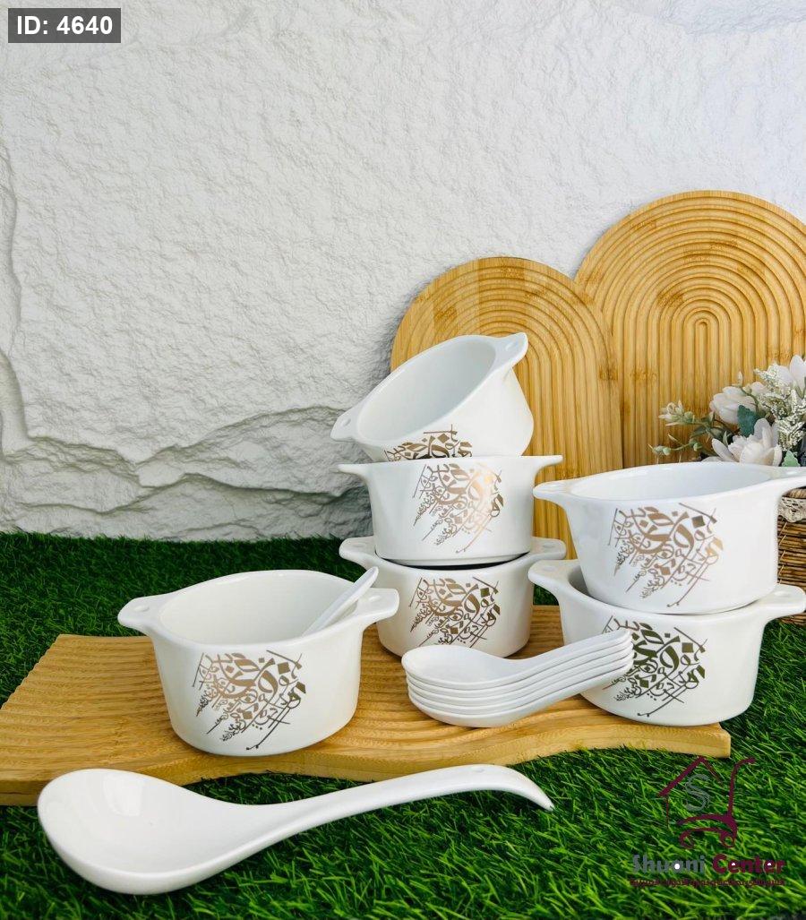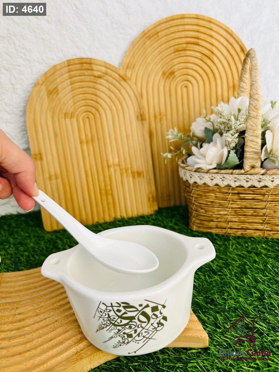 طقم شوربة مميز طنجرة بغطاء مع 6 ملاعق ومغرفةو 6 زبادي أنيق وجذاب جدا وينقل سفرتك للفخامة