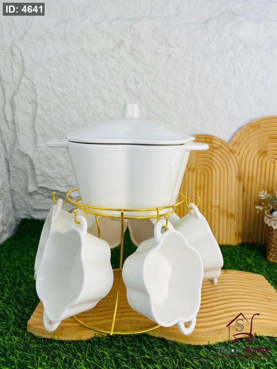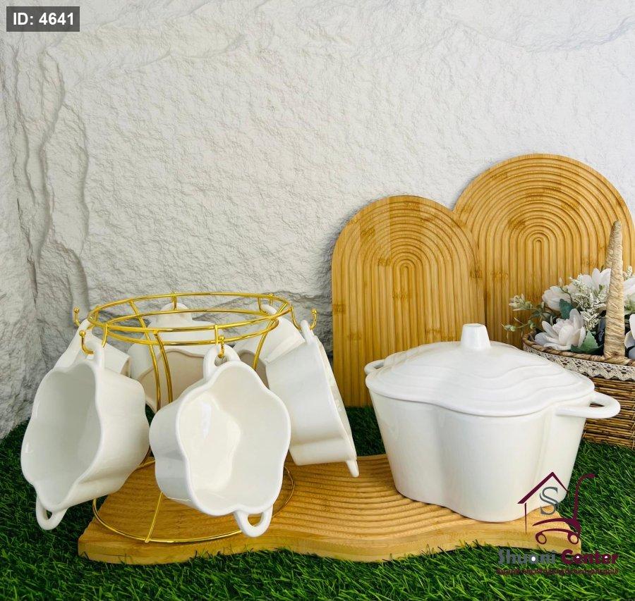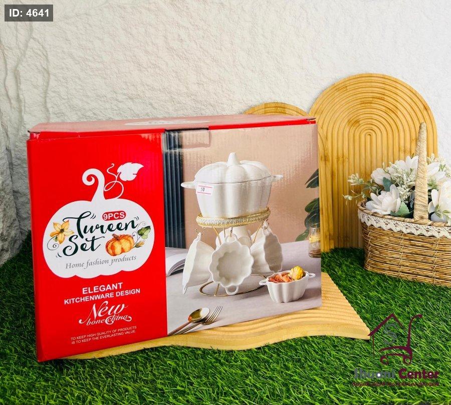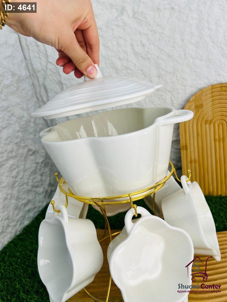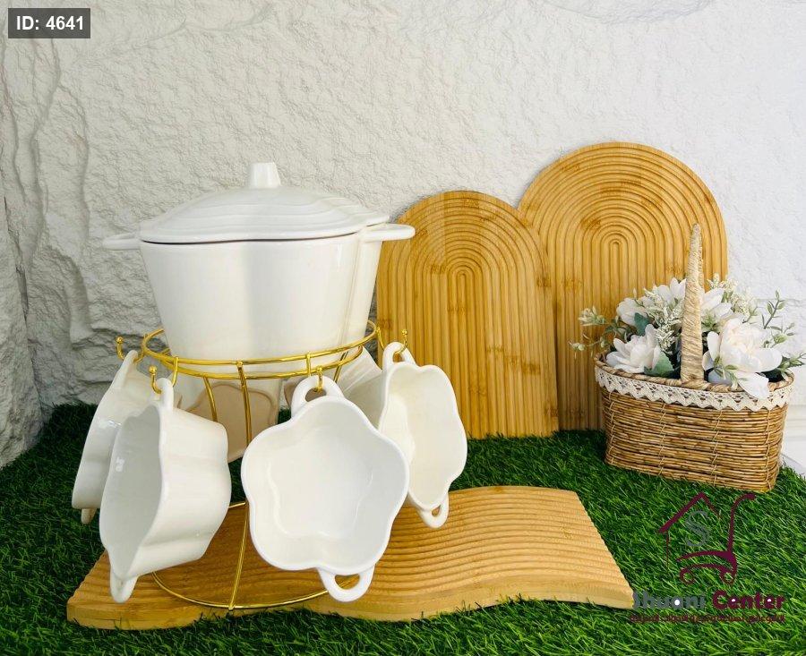 طقم شوربة مميزة طنجرة بغطاء مع 6 زبادي وستاند مميز وانيق وراقي جدا