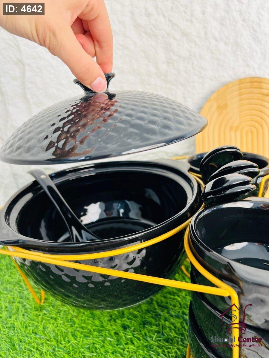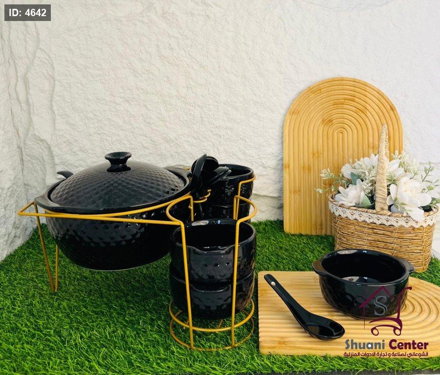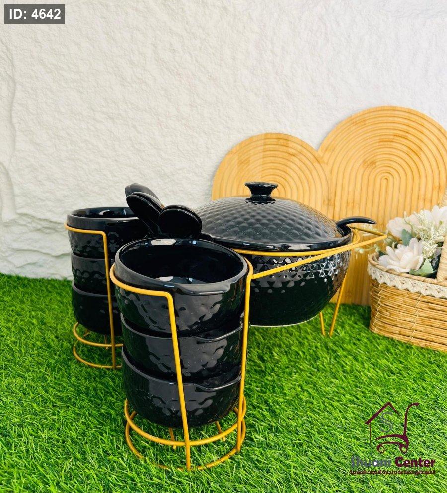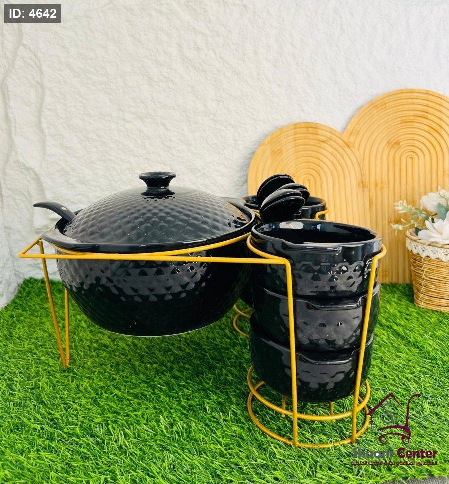 طقم شوربة مميزة طنجرة بغطاء مع 6 زبادي و6 ملاعق ومغرفةو وستاند انيق وفخم لاصحاب الذوق الرفيع