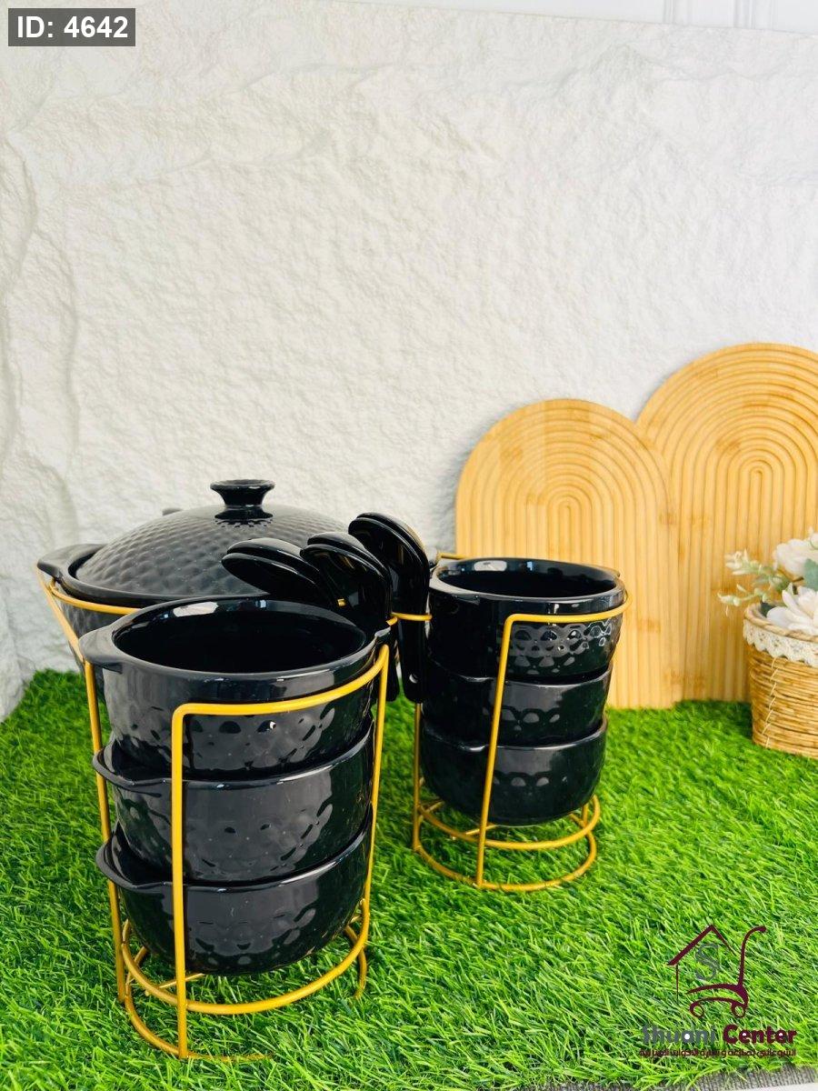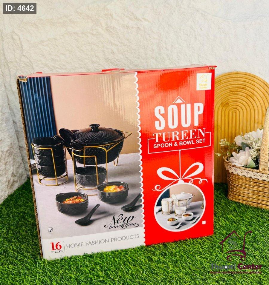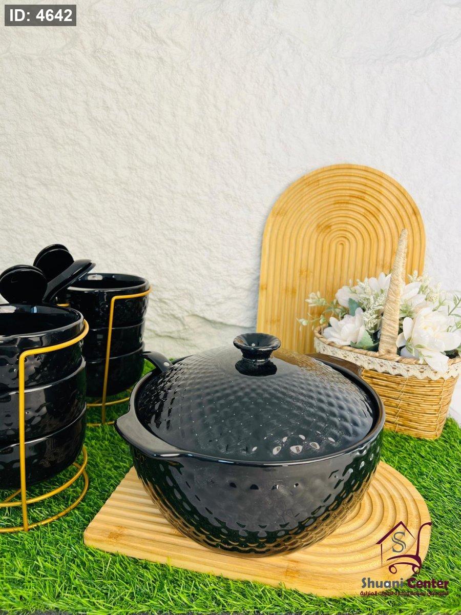طقم شوربة مميزة طنجرة بغطاء مع 6 زبادي و6 ملاعق ومغرفةو وستاند انيق وفخم لاصحاب الذوق الرفيع