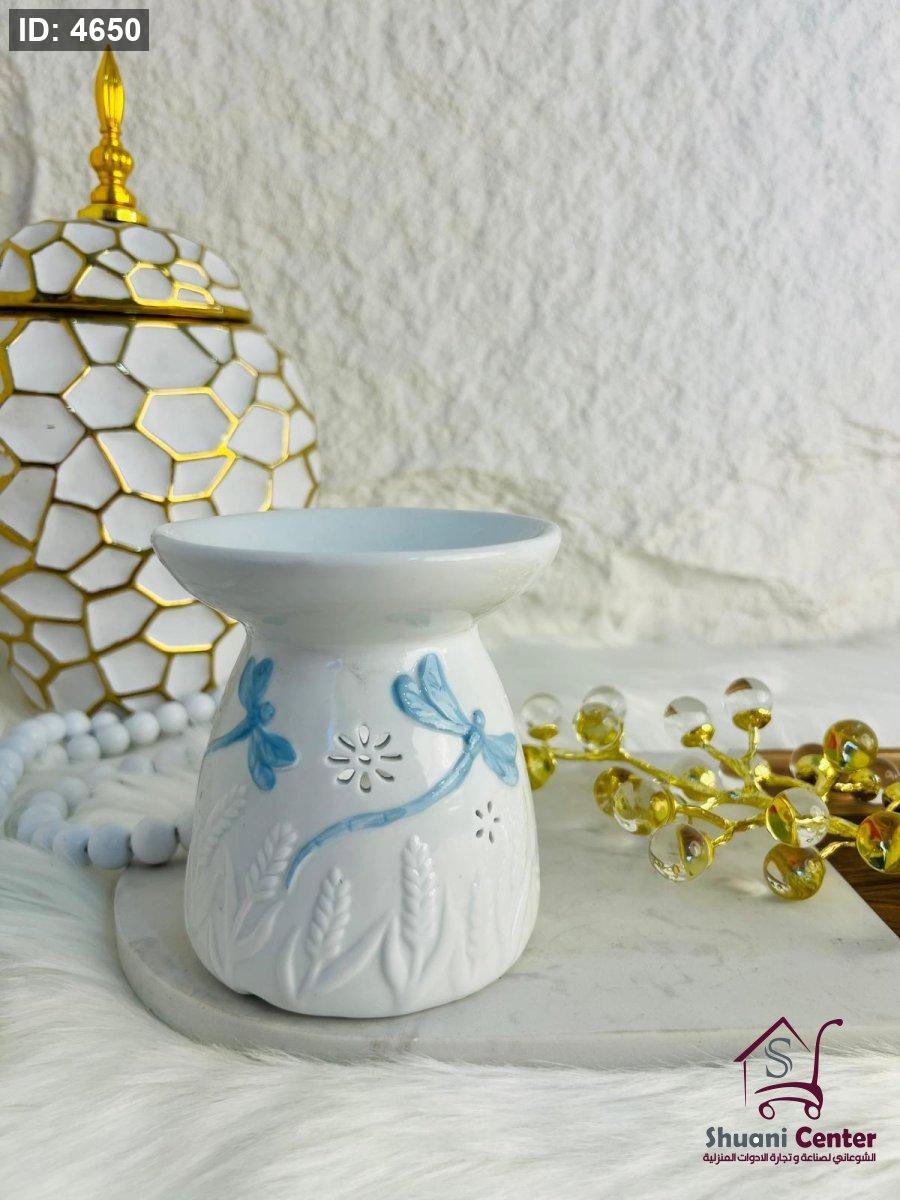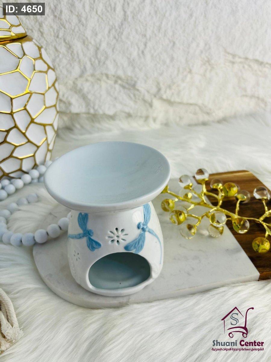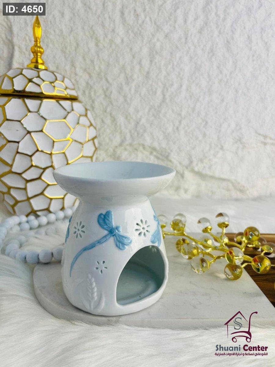 مبخرة زجاجية بيضاء اللون مع تداخل اللون الازرق السماوي مميزة وانيقة