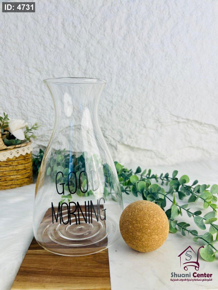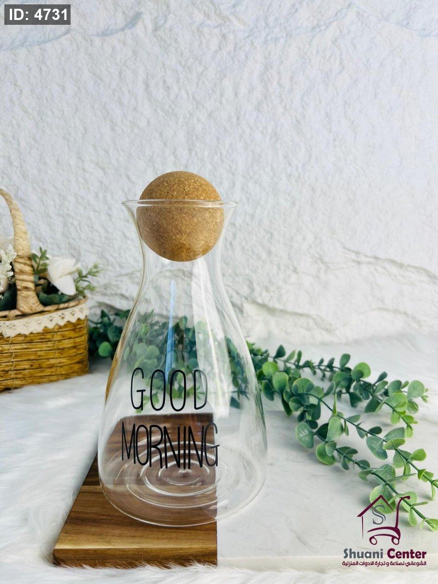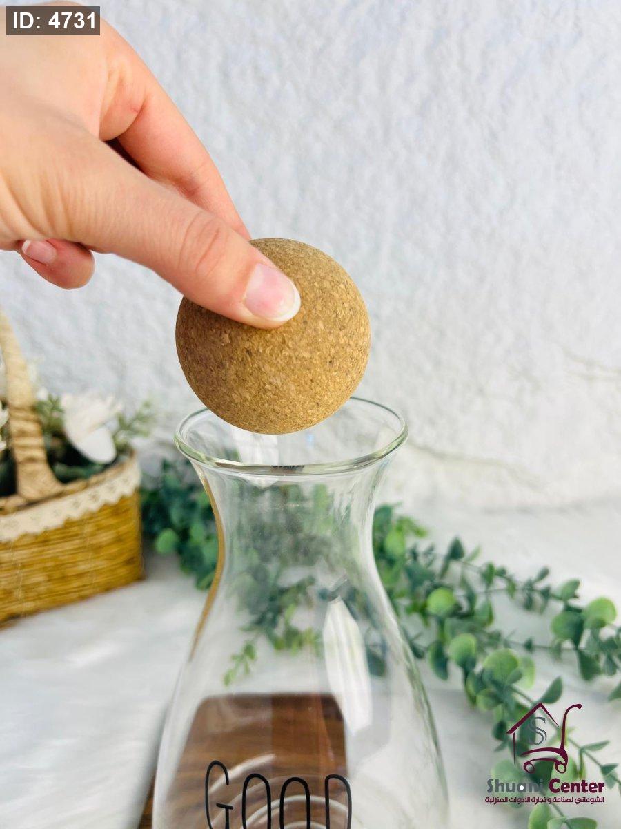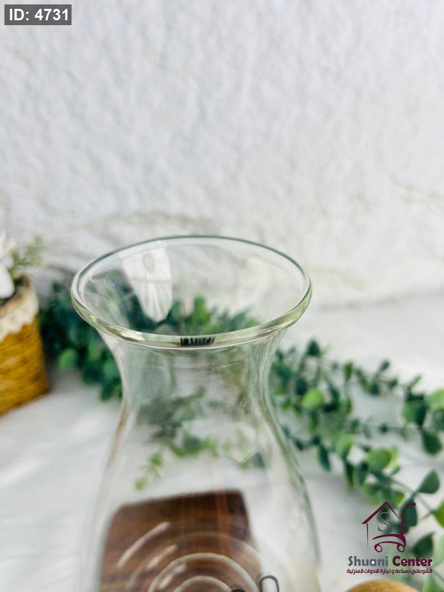 شاف زجاجي مميز (جرة) بغطاء خشبي فخم طابة أنيق وجذاب وفخم