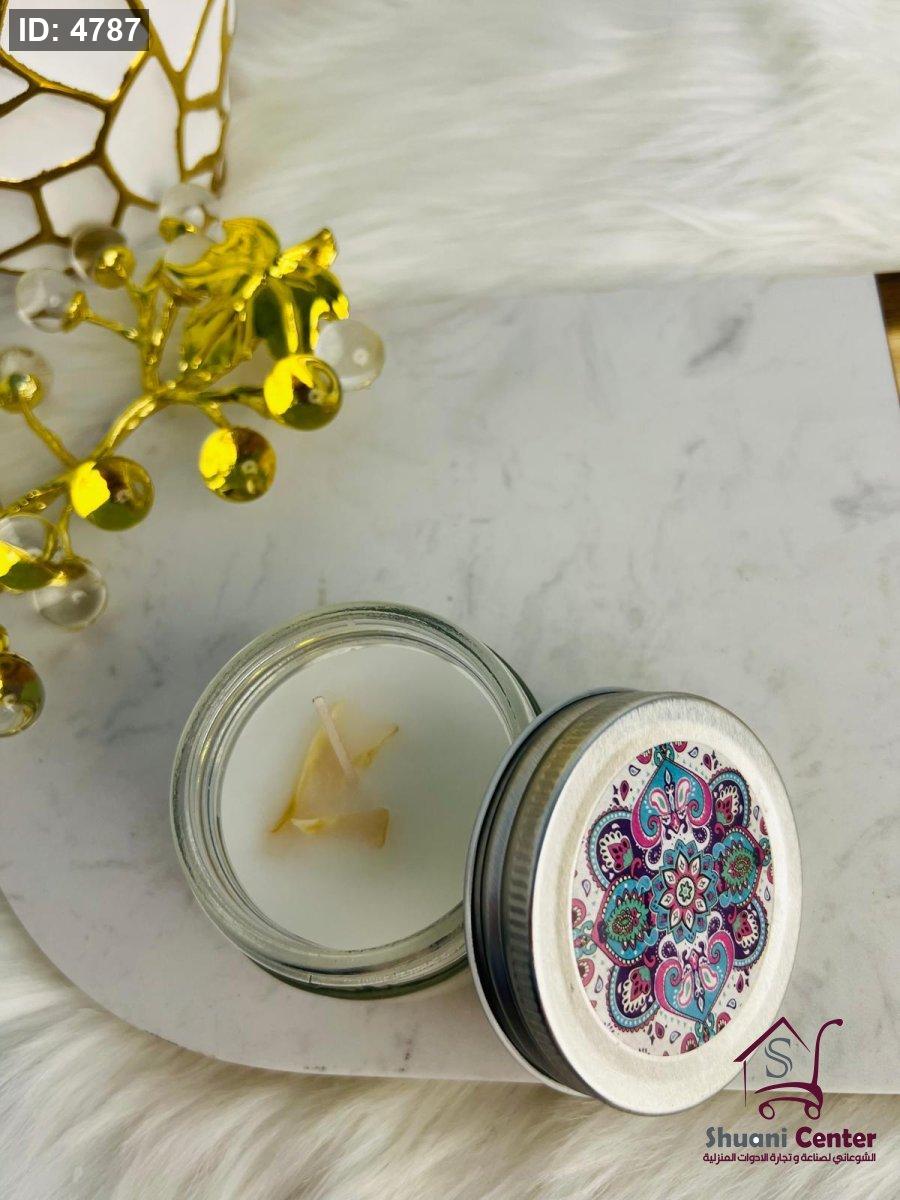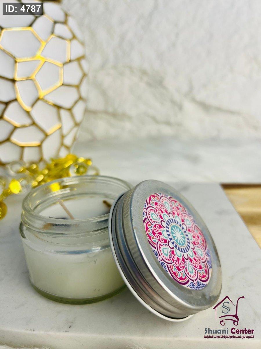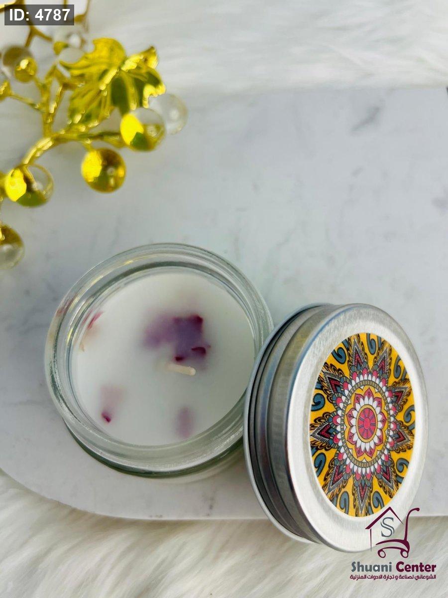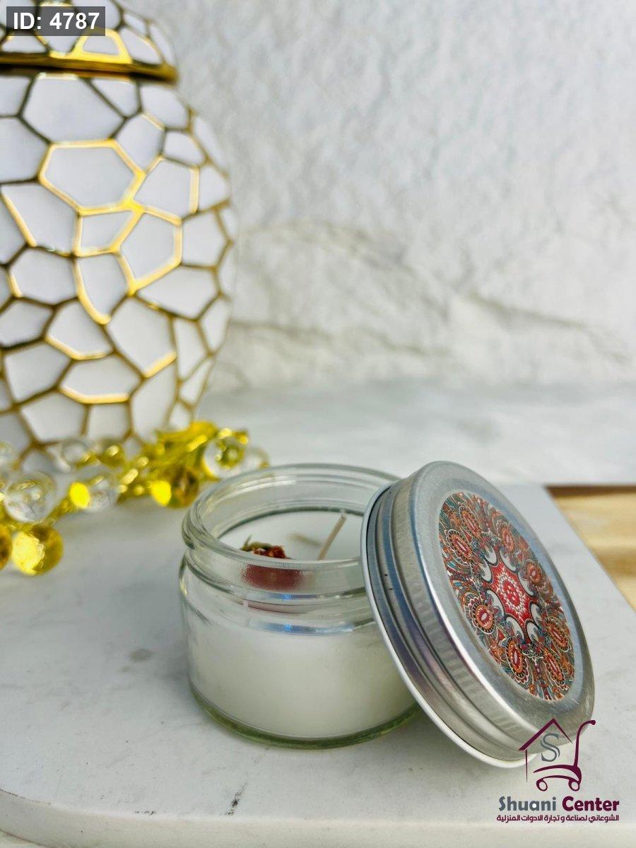 شمع عطري مميز وفخم بعلبة زجاجية وغطاء حديدي جميل وانيقة
