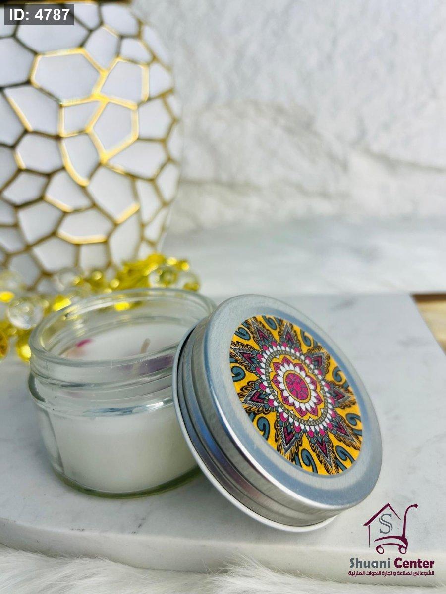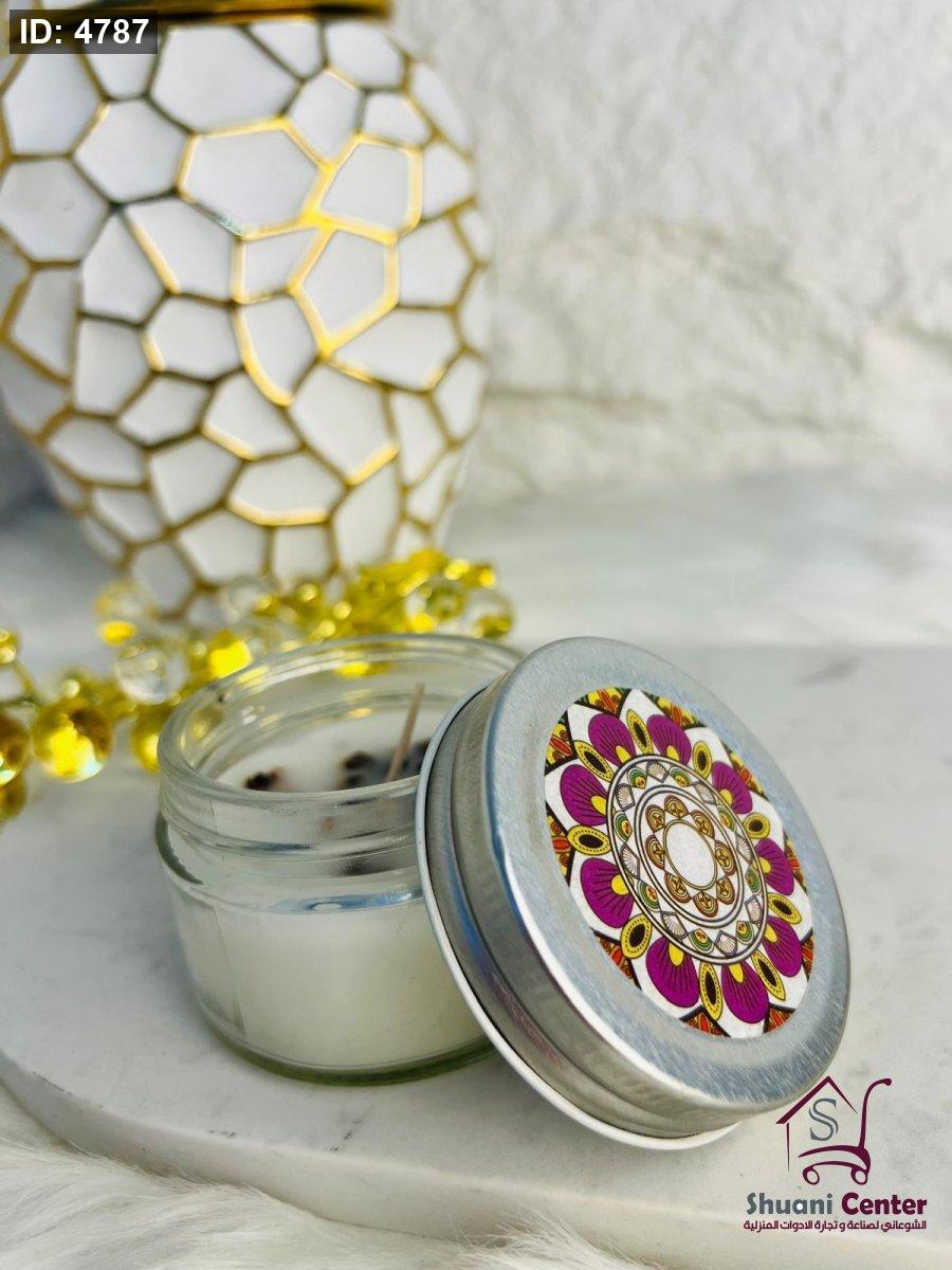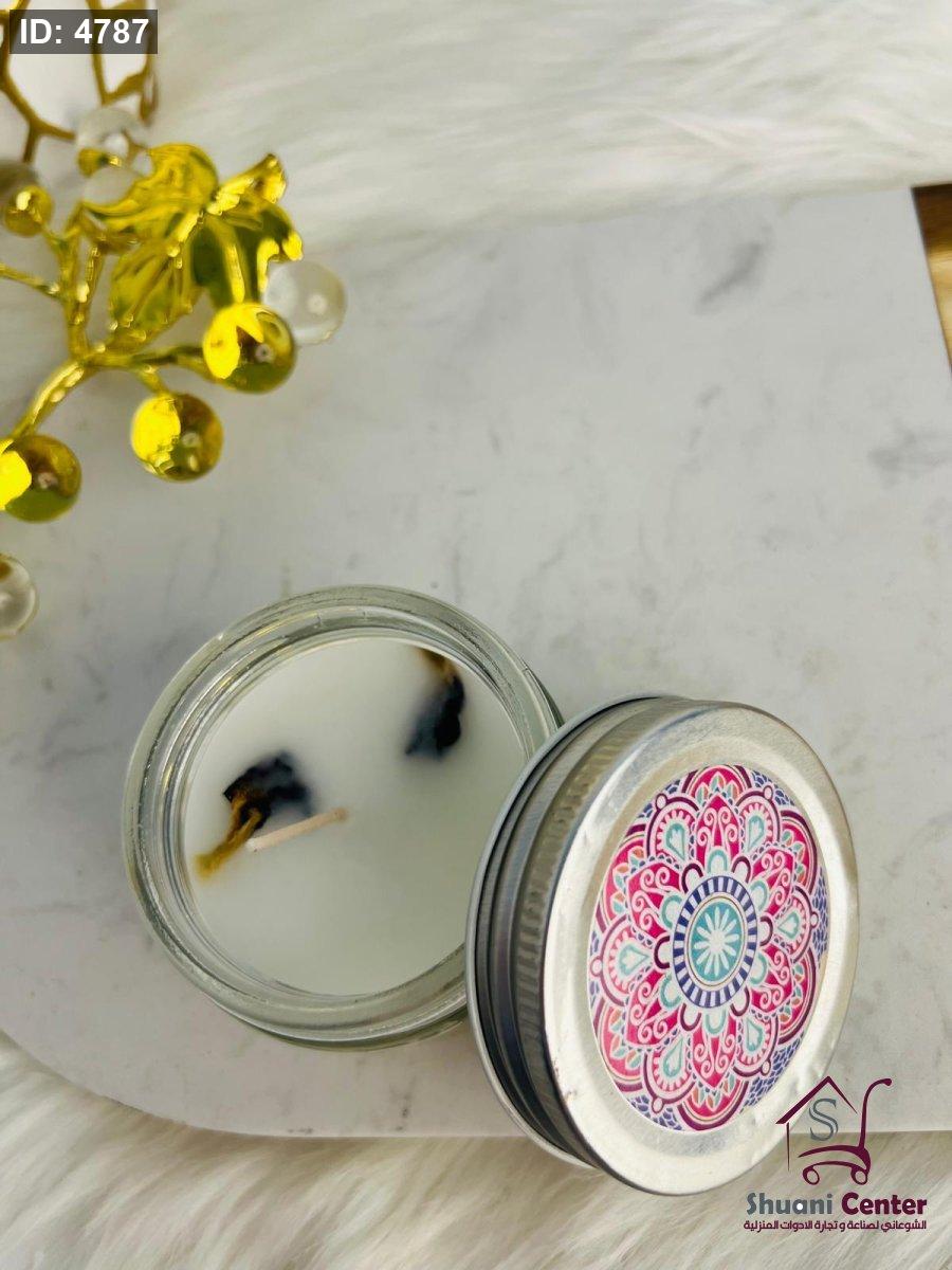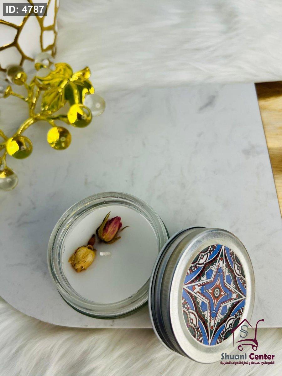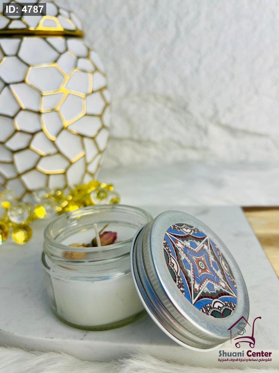 شمع عطري مميز وفخم بعلبة زجاجية وغطاء حديدي جميل وانيقة
