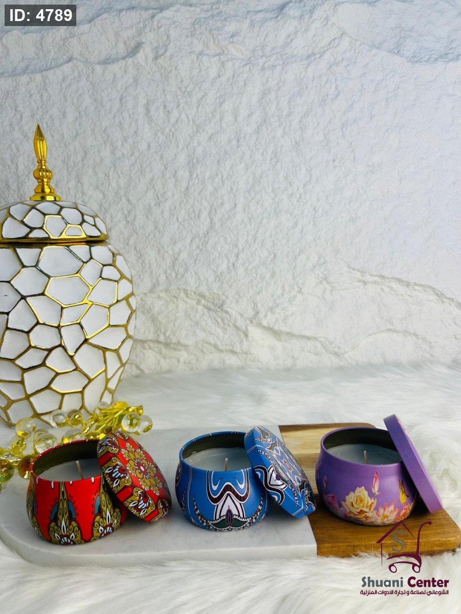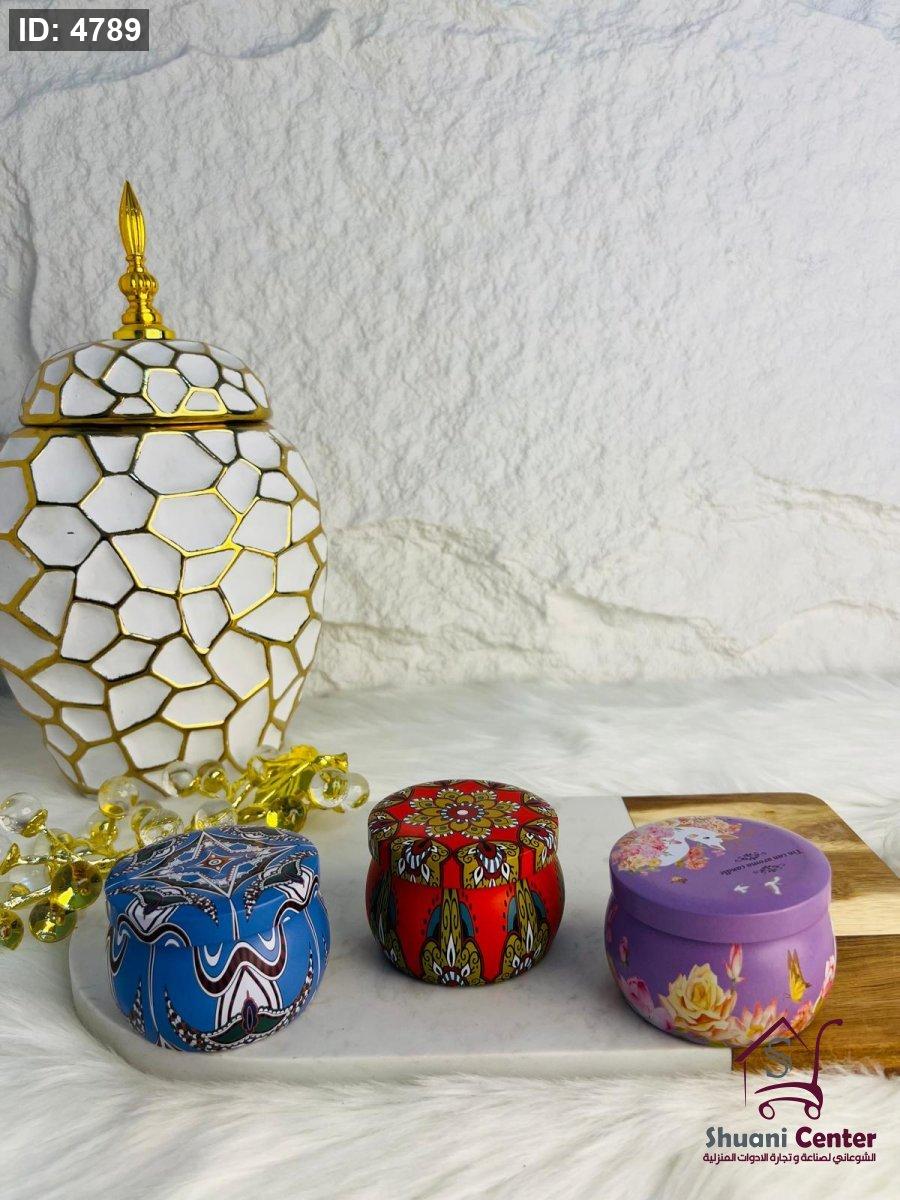 شمع عطري مميز بعلبة مغطاة منقوشة فخمة وأنيقة لاصحاب الذوق الرفيع