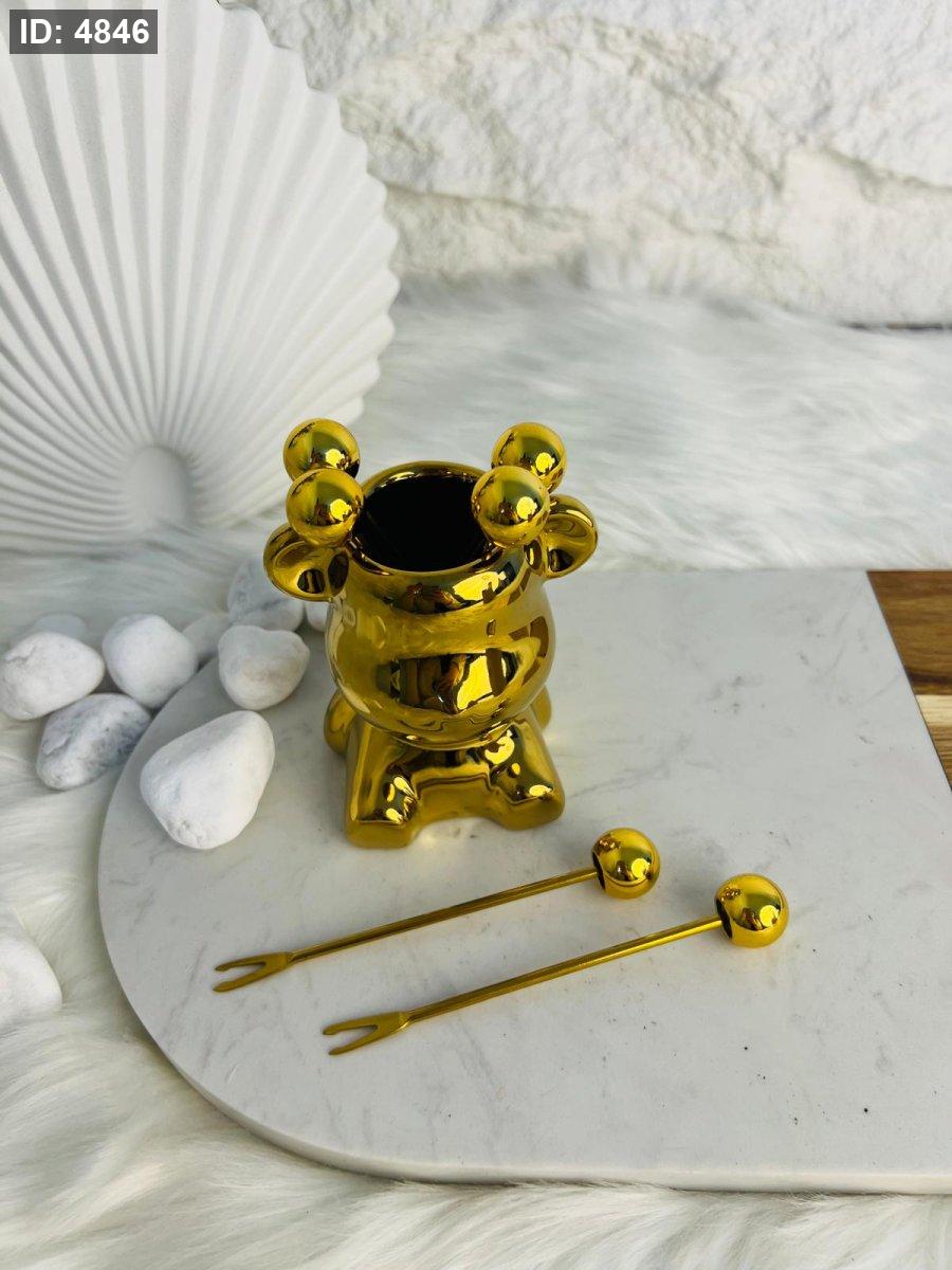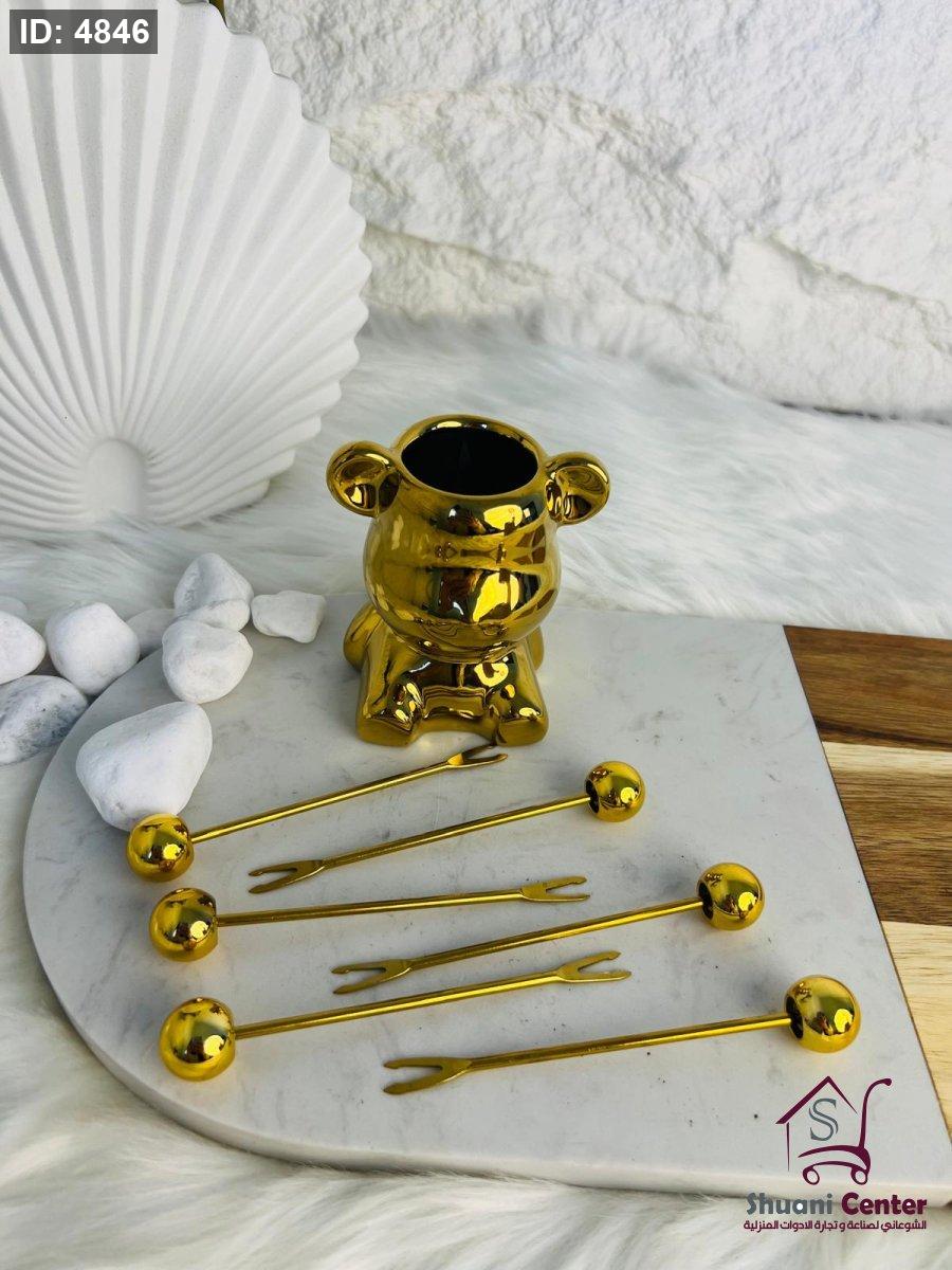 طقم شوك حلويات مع قاعدة ذهبية مميز وانيق وراقي جدا