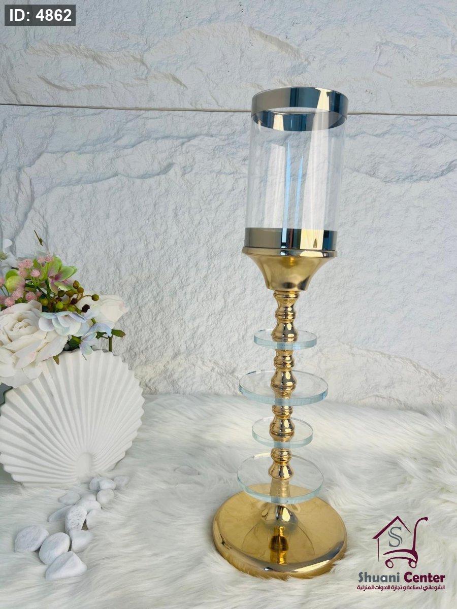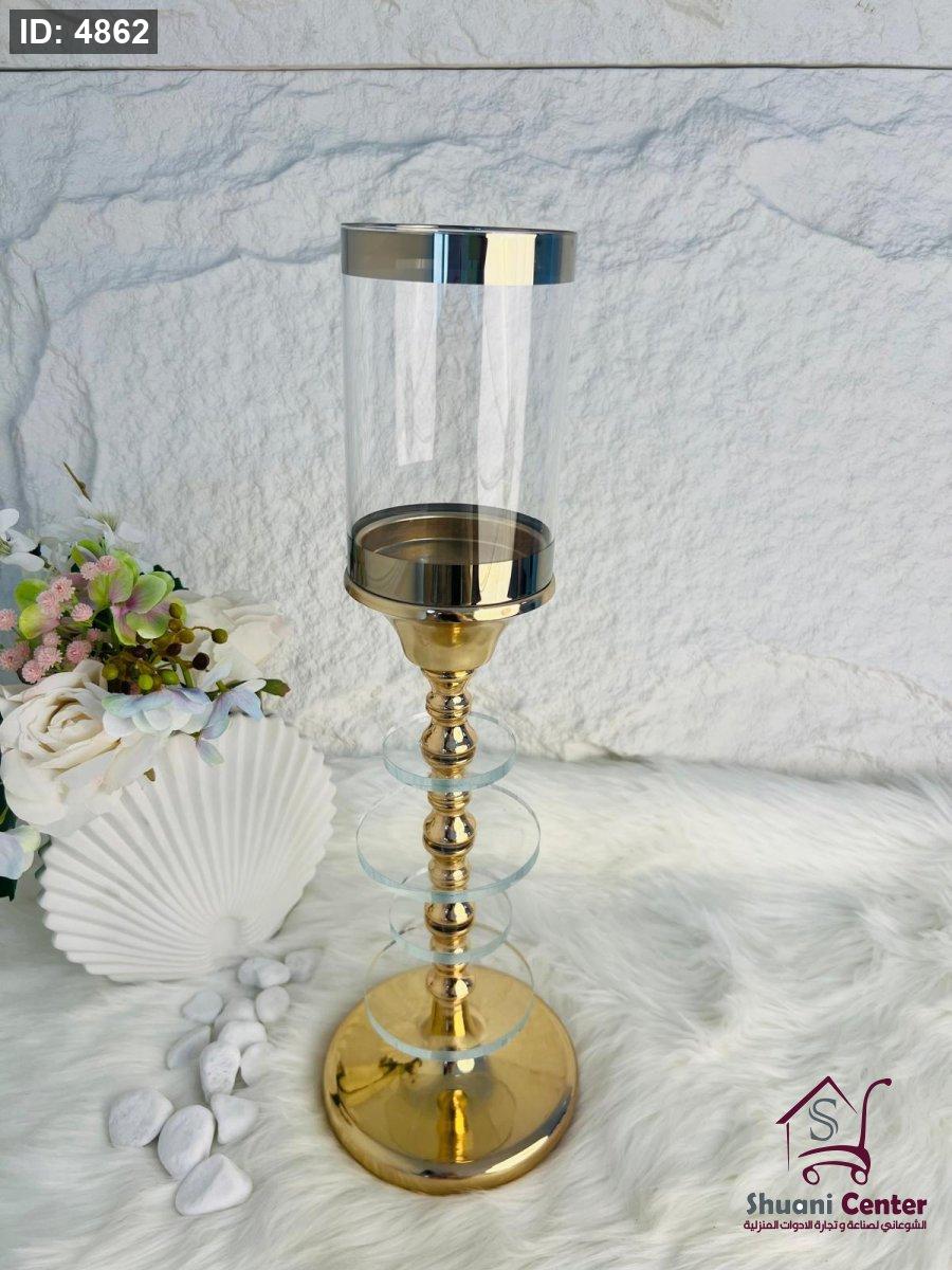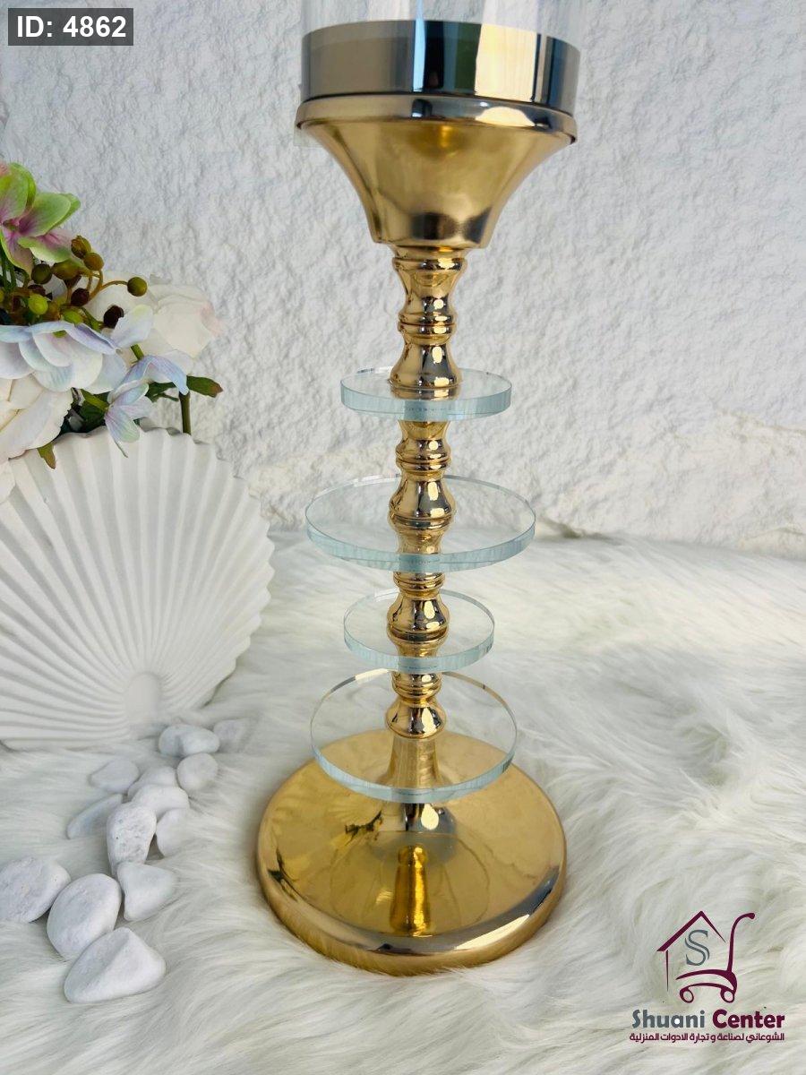 طقم شمعدان ذهبي زجاجي فخم وأنيق وثقيل جدا لاصحاب الذوق العالي