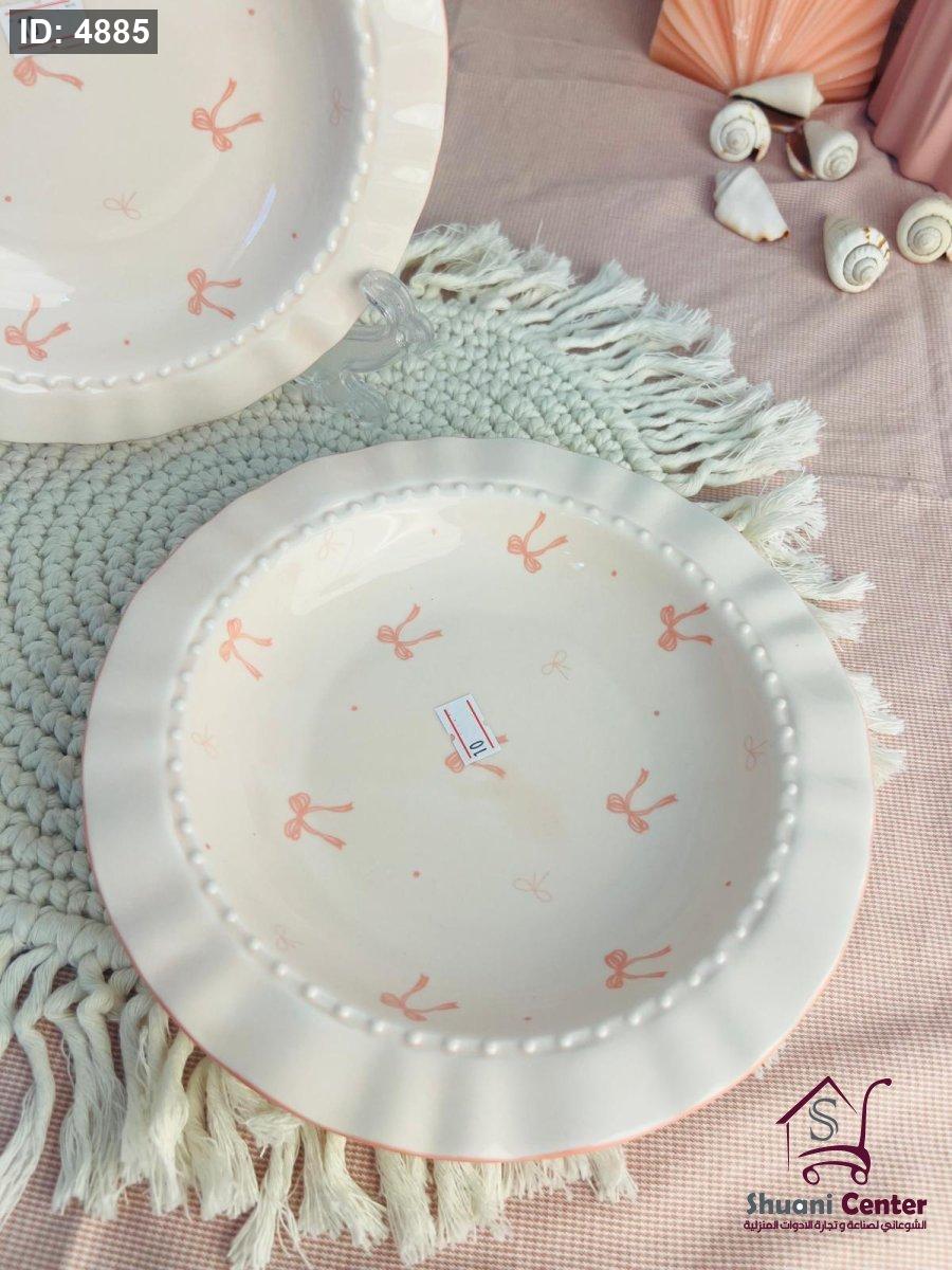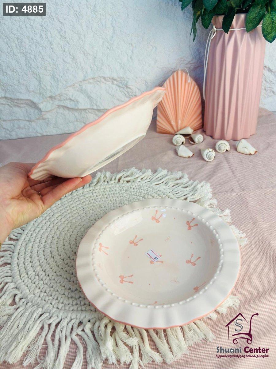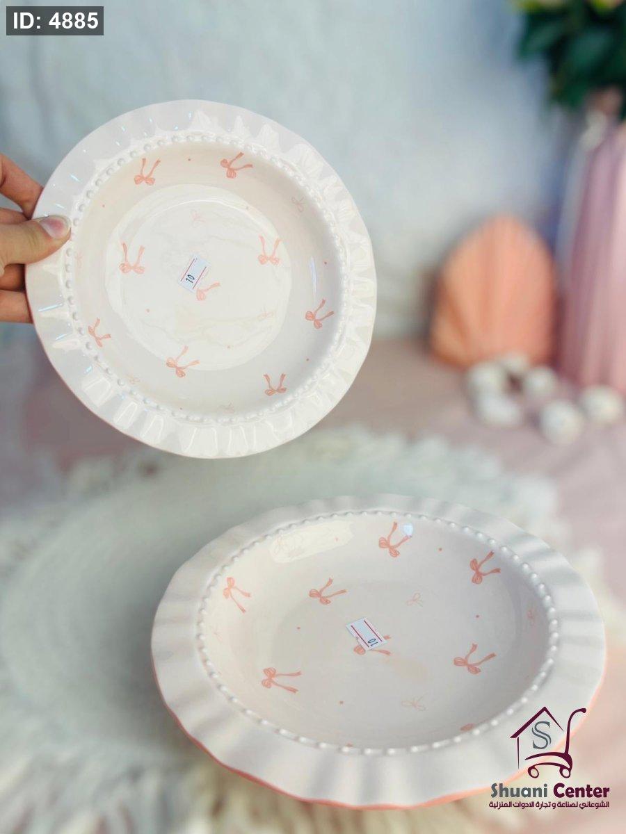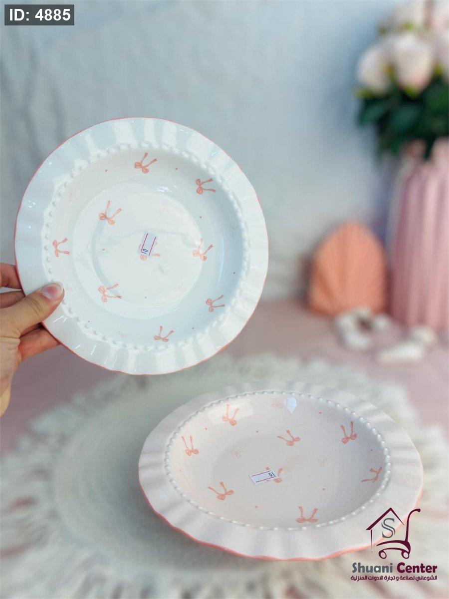 صحن بورسلان مجور مميز وانيق باللون الابيض والزهري فخم جدا لاصحاب الذوق الرفيع
