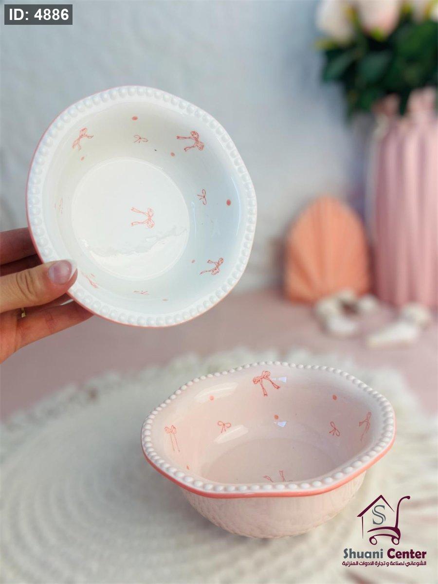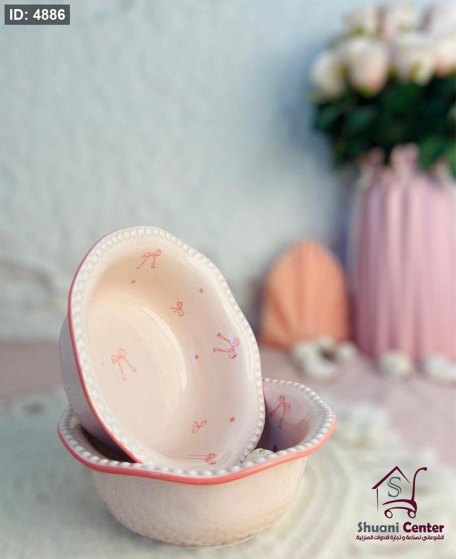 زبدية بورسلان مميزة وانيقة باللون الابيض والزهري فخمة جدا لاصحاب الذوق الرفيع