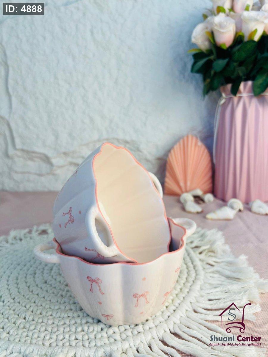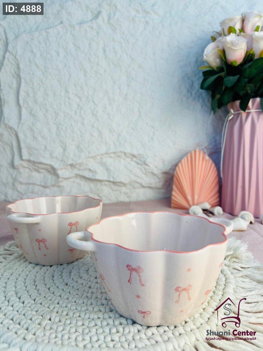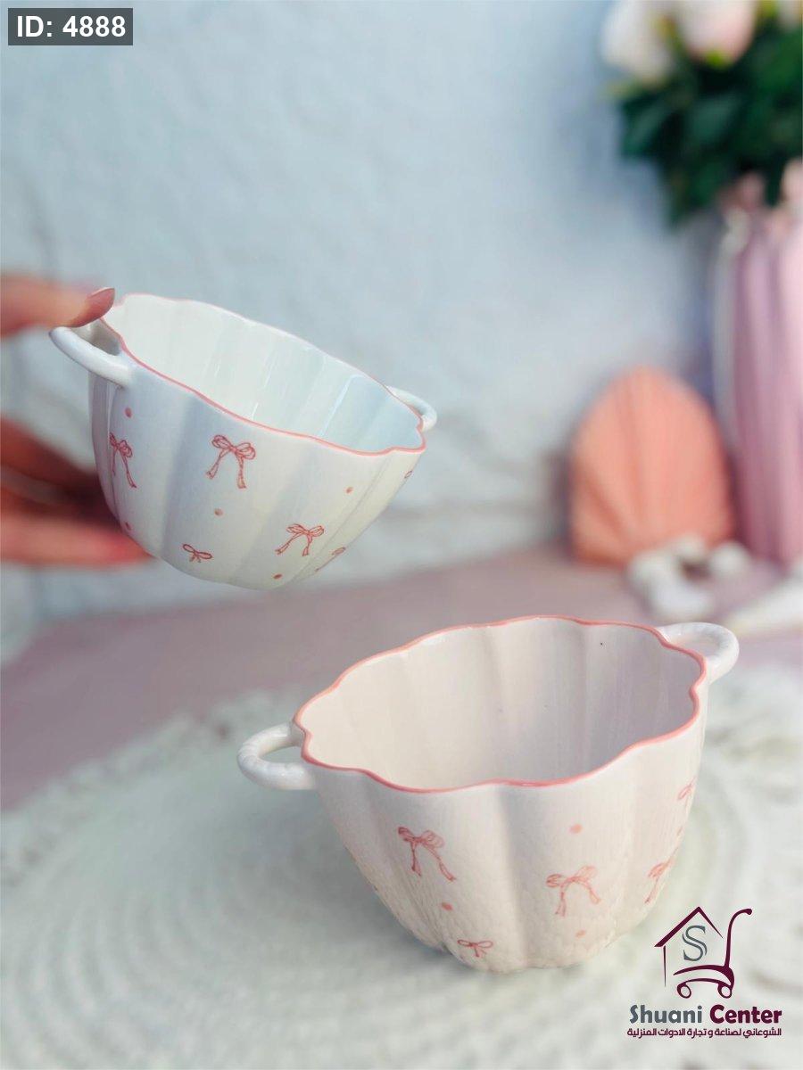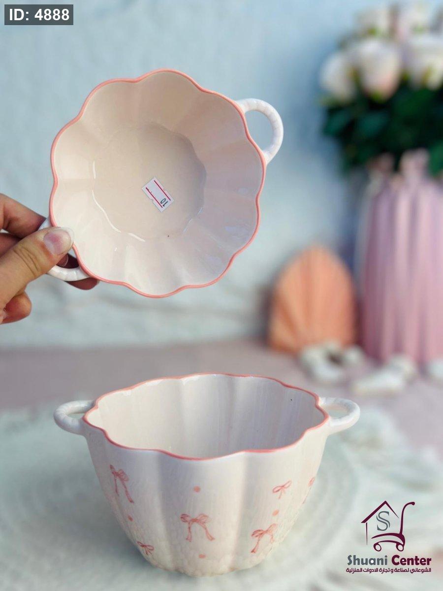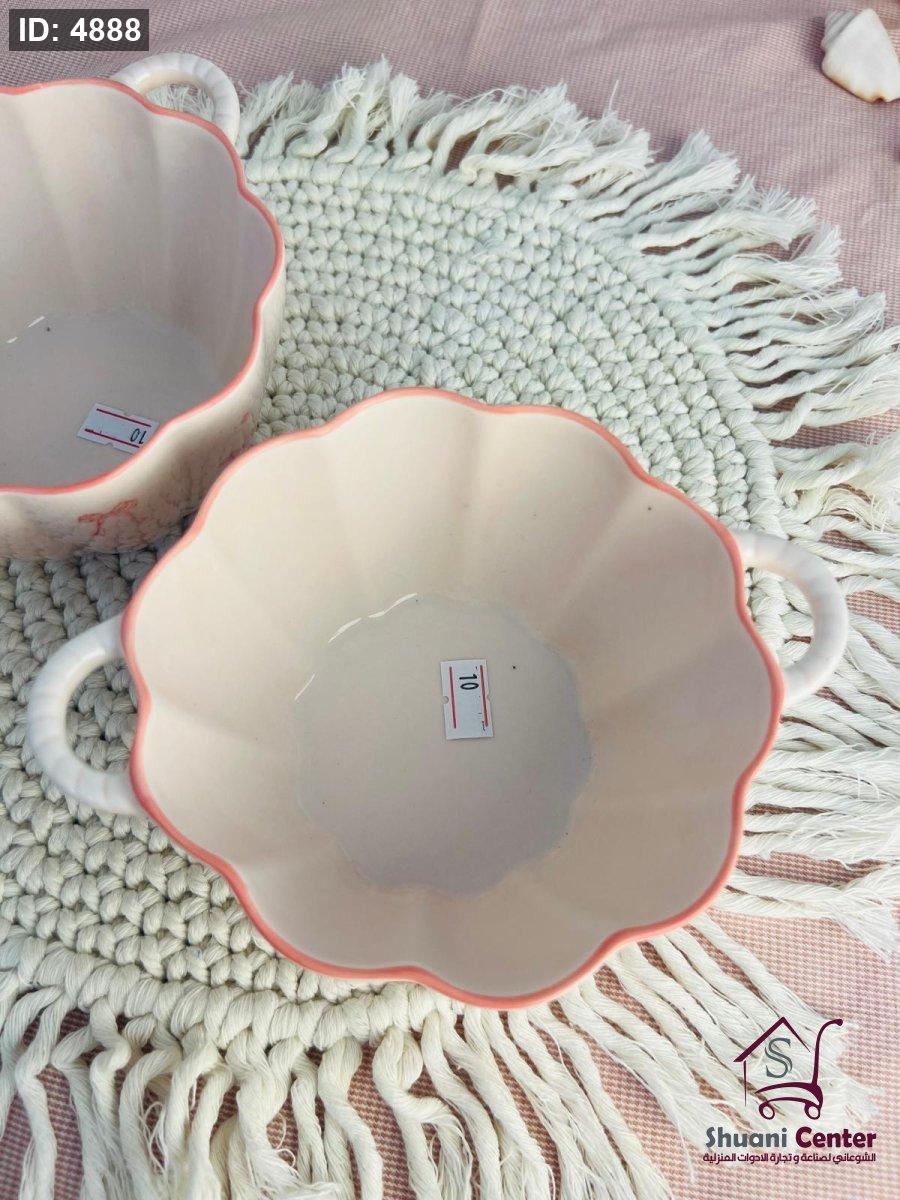 زبدية بورسلان بيدين مميزة وانيقو باللون الابيض والزهري فخمة جدا لاصحاب الذوق الرفيع
