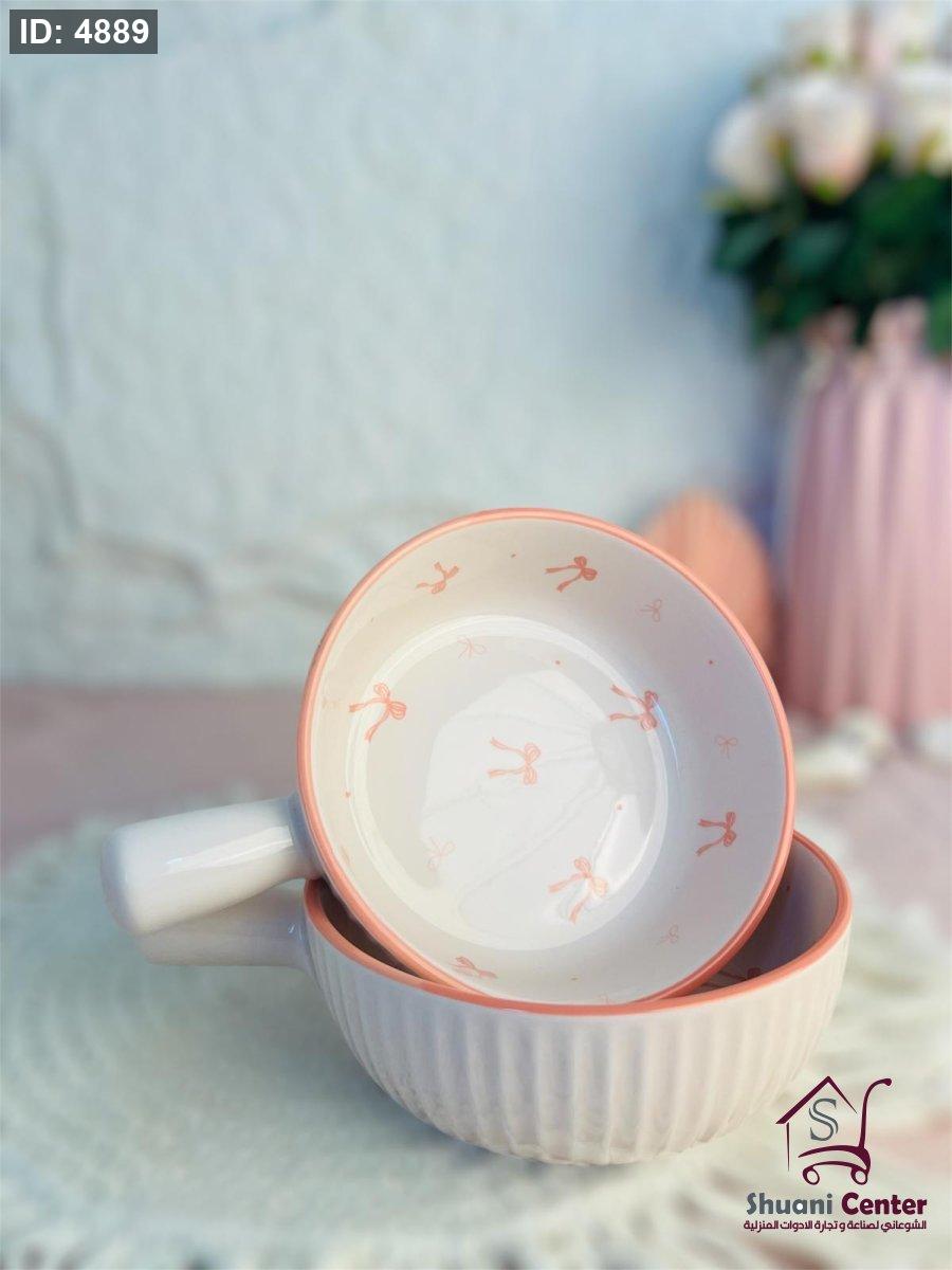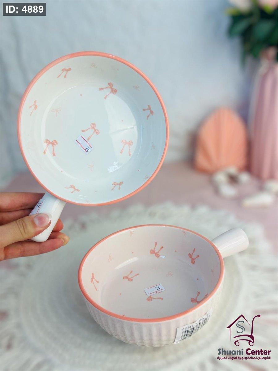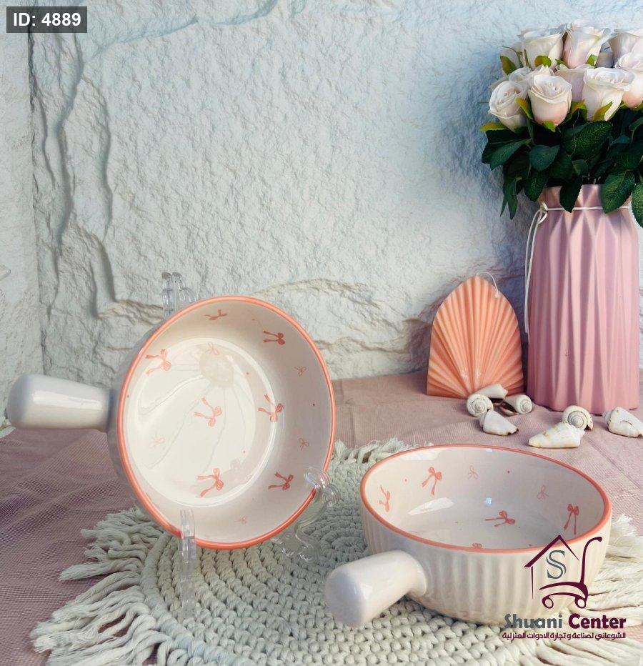 زبدية بورسلان بيد مميزة وانيقة باللون الابيض والزهري فخمة جدا لاصحاب الذوق الرفيع