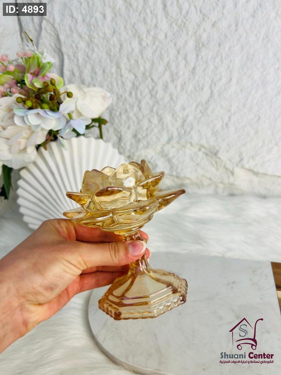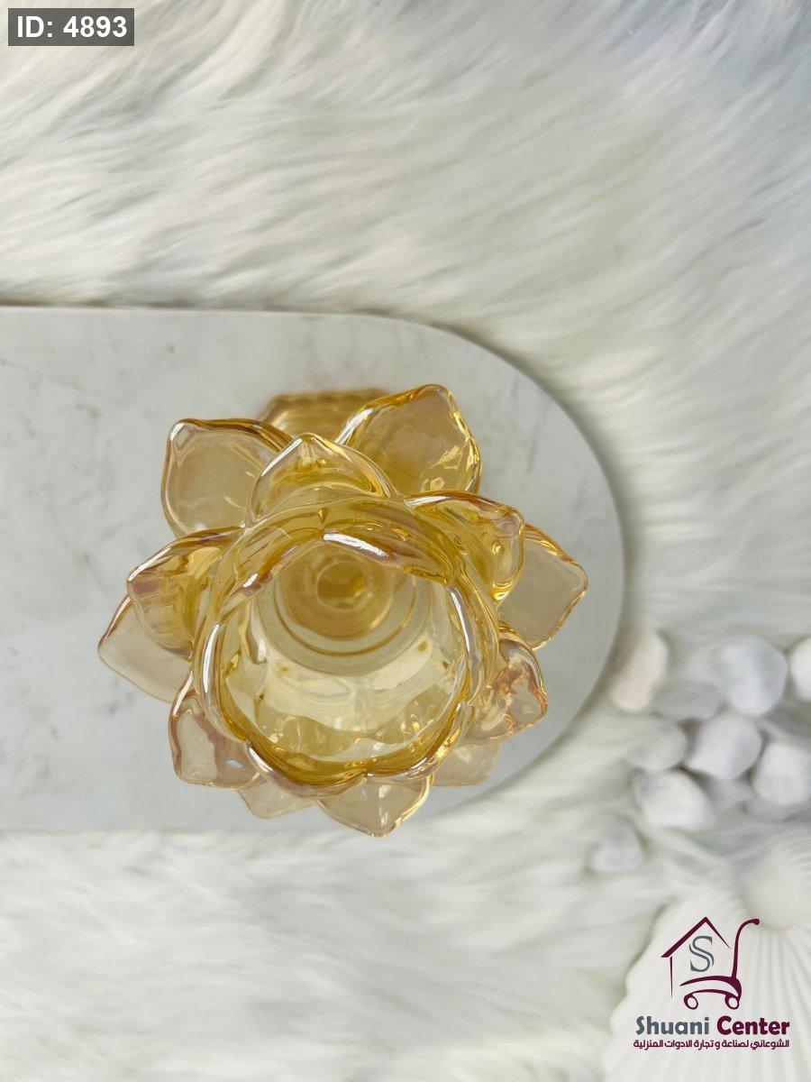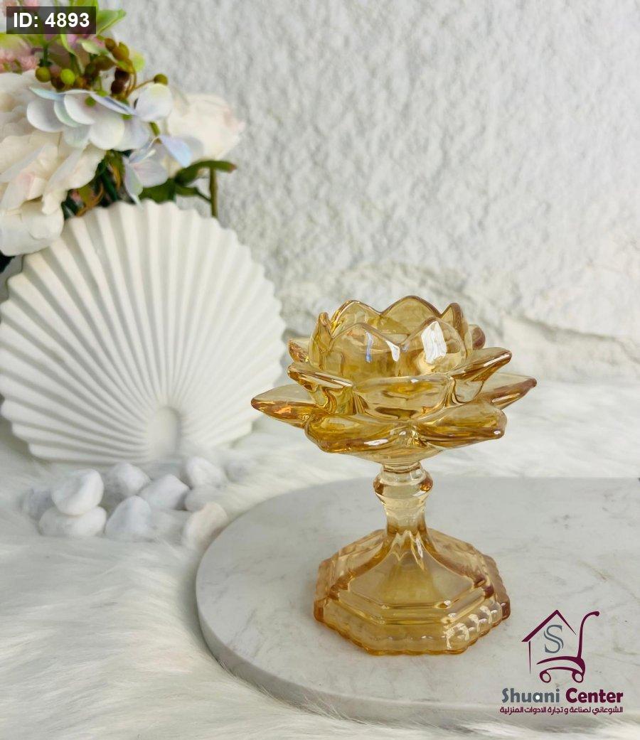 شمعدان زجاجي عسلي فخم على شكل وردة جورية مميزة