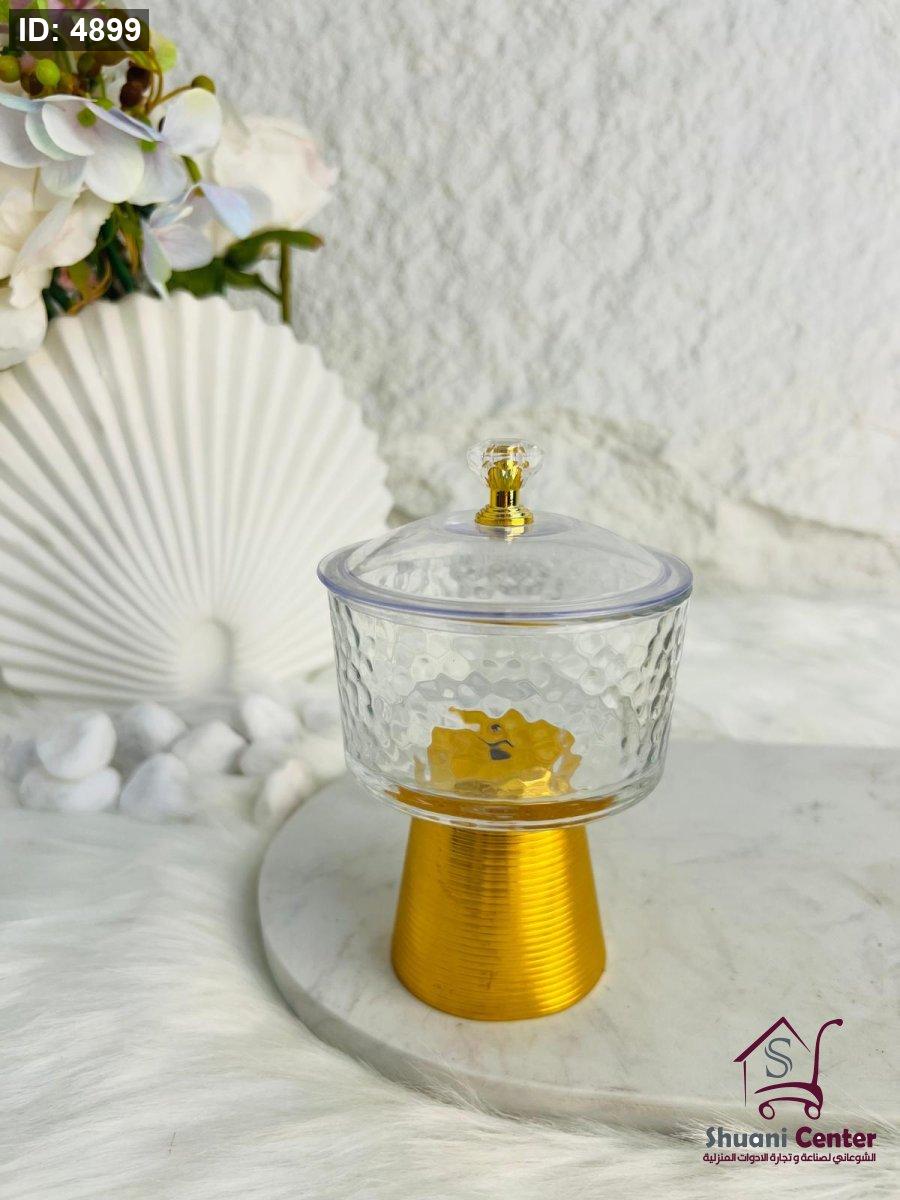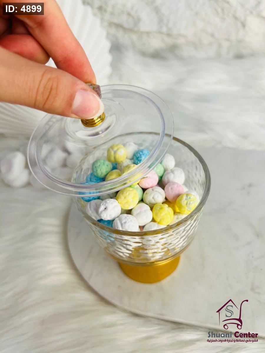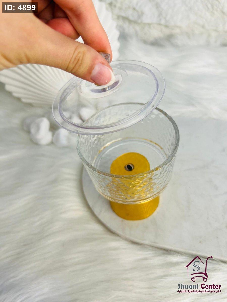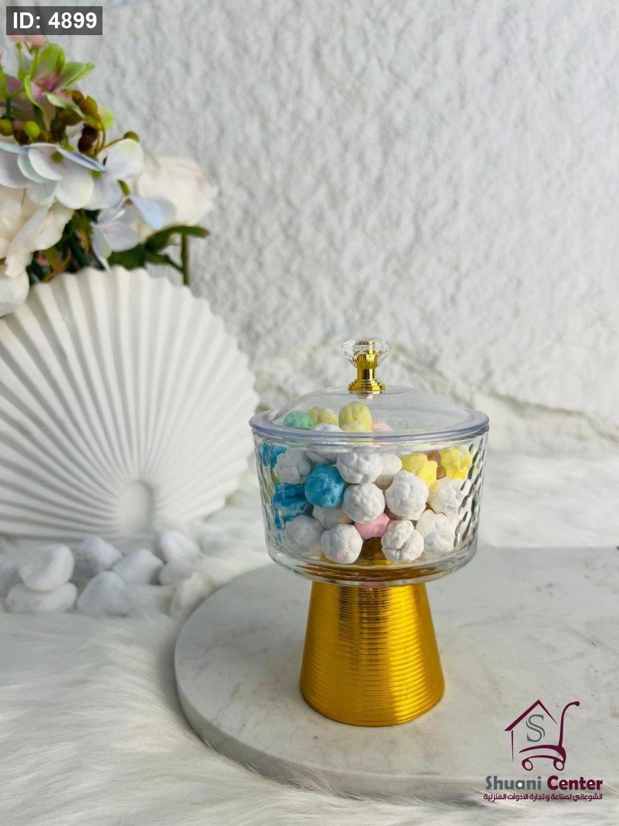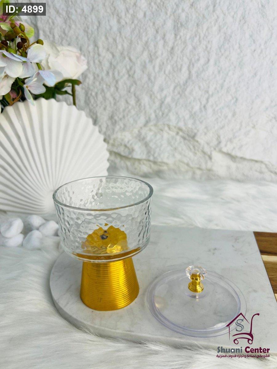 مضيفة زجاجية دائرية بقاعدة ذهبية مميزة وانيقة وفخمة