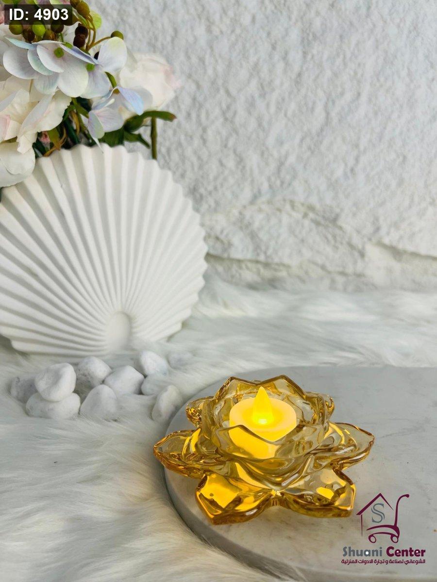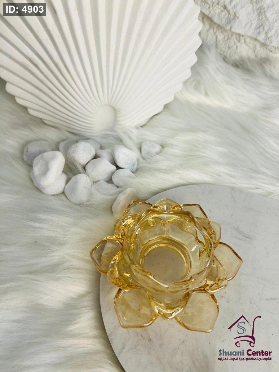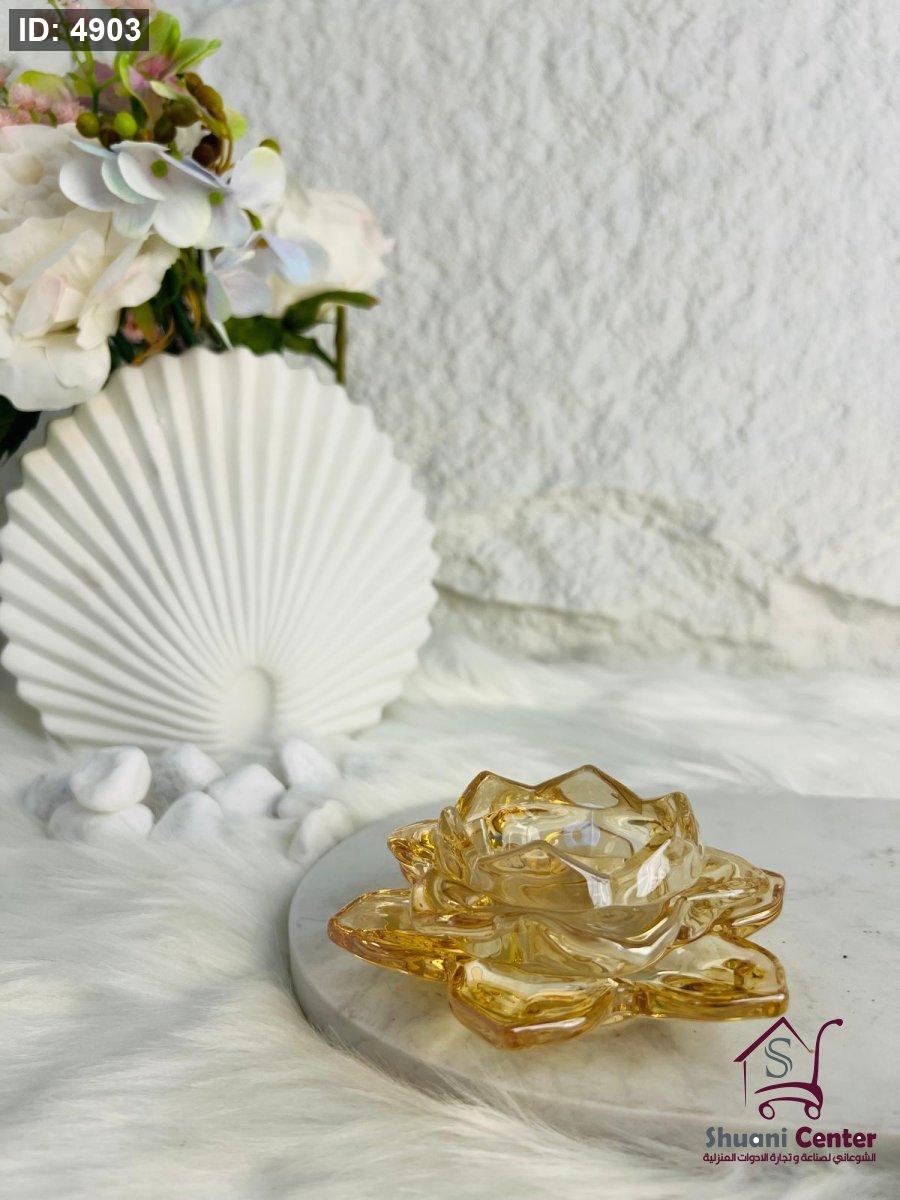 شمعدان زجاجي عسلي فخم على شكل وردة جورية مميزة وانيقة وفخمة