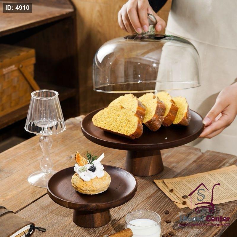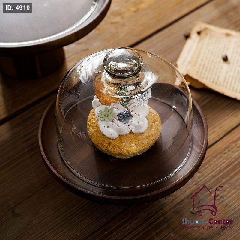 صحن ضيافة هندي خشبي بقاعدة وغطاء زجاجي مميز وانيق وراقي جدا