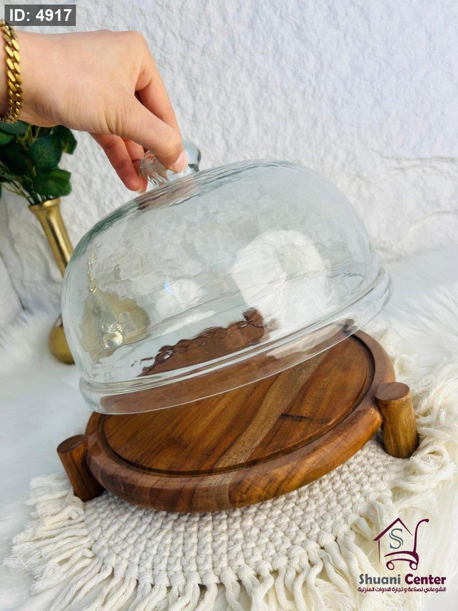 صحن ضيافة خشب هندي مميز بغطاء زجاجي مميز وانيق وراقي جدا
