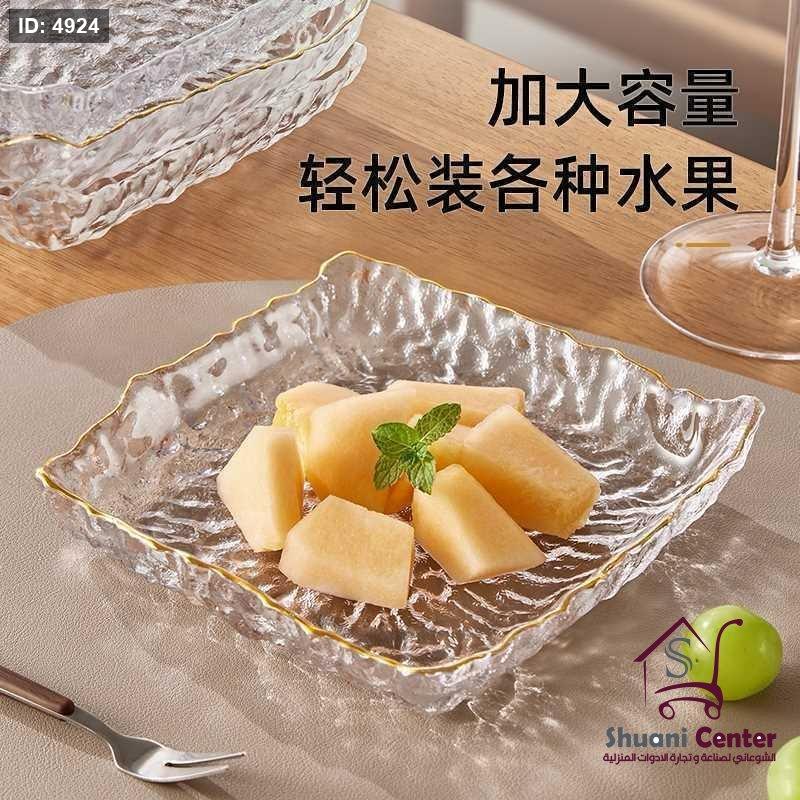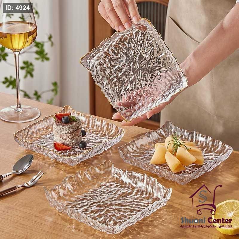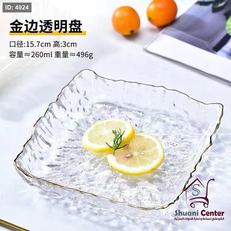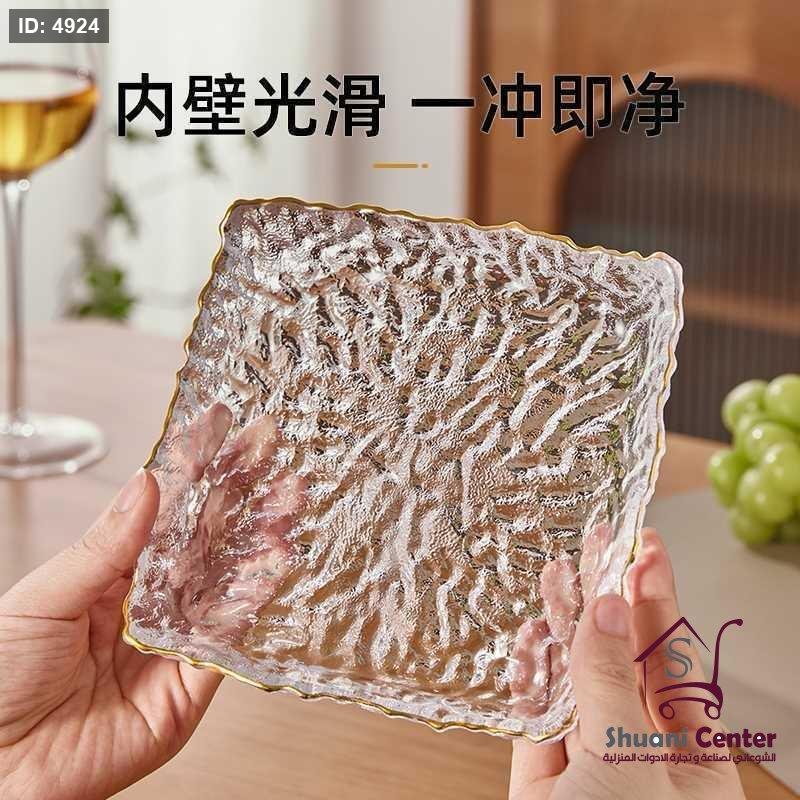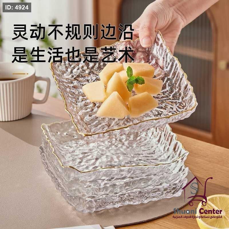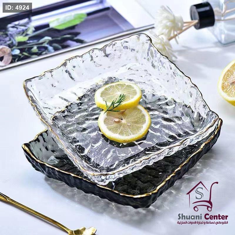 صحن تقديم مربع مبزر بحز ذهبي مميز وانيق وراقي جدا