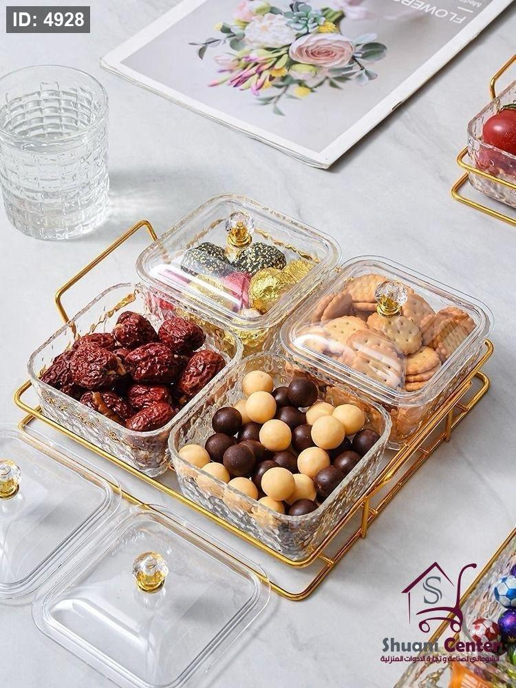 مضيفة زجاجية بقاعدة ذهبية اربع زبادي مميزة وفخمة وذات جودة عالية