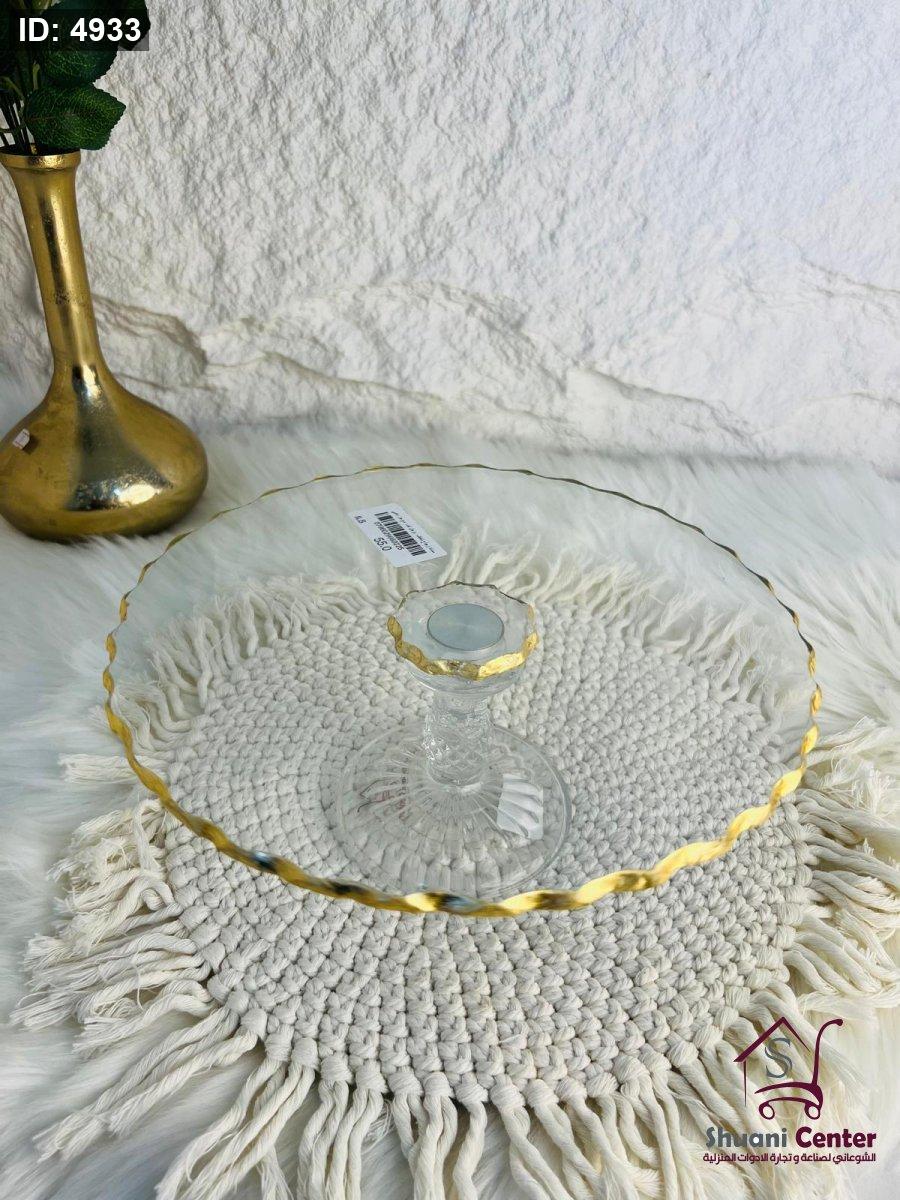 صحن تقديم دوار زجاجي بحر ذهبي مميز وانيق وراقي جدا