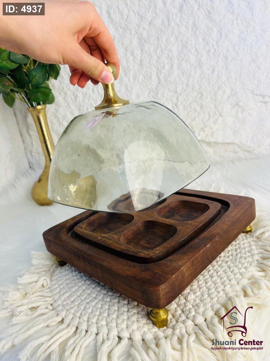 مضيفة هندية مميزة بقاعدة خشبية وغطاء زجاجي فخم ومميز جدا