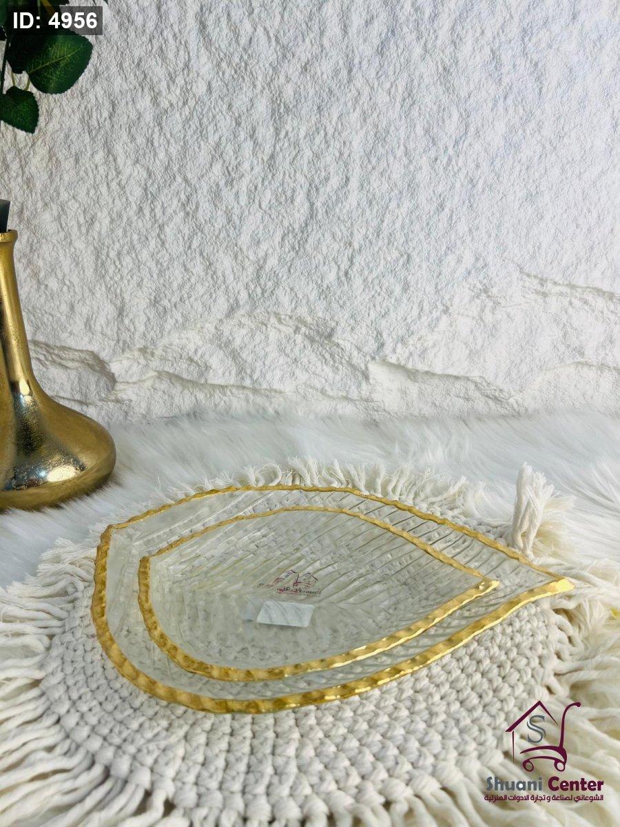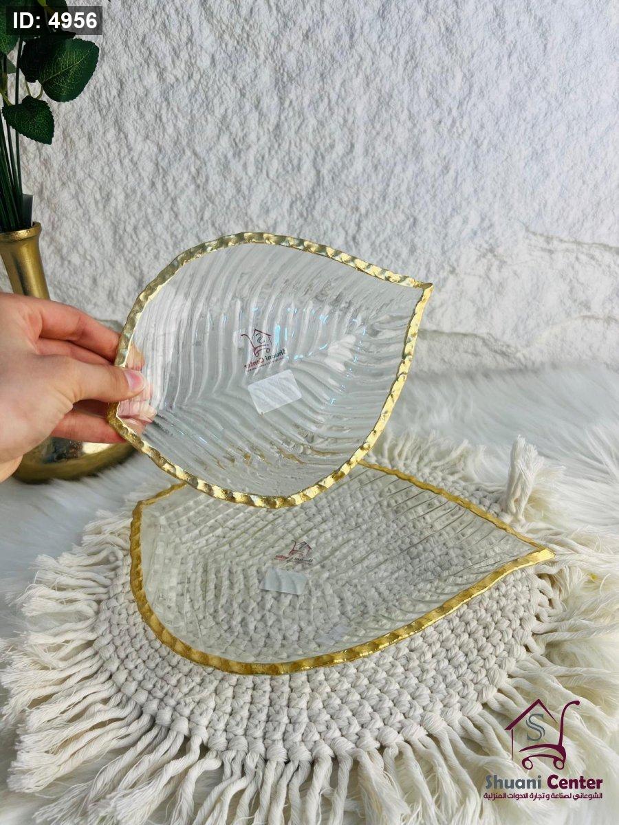 صحن ضيافة زجاجي بحز ذهبي مميز وانيق وراقي جدا لاصحاب الذوق الرفيع