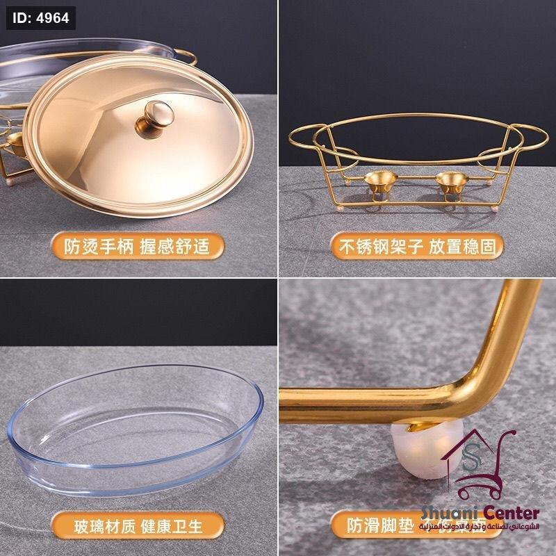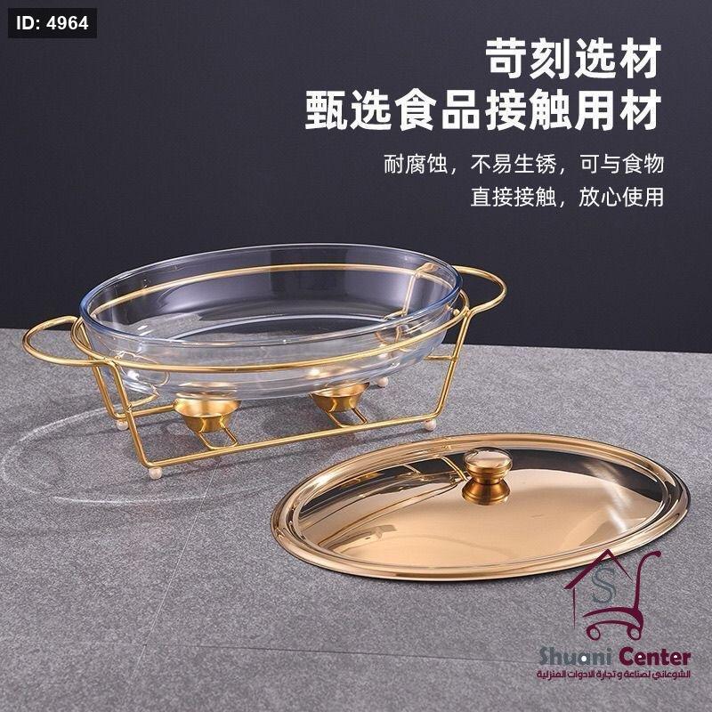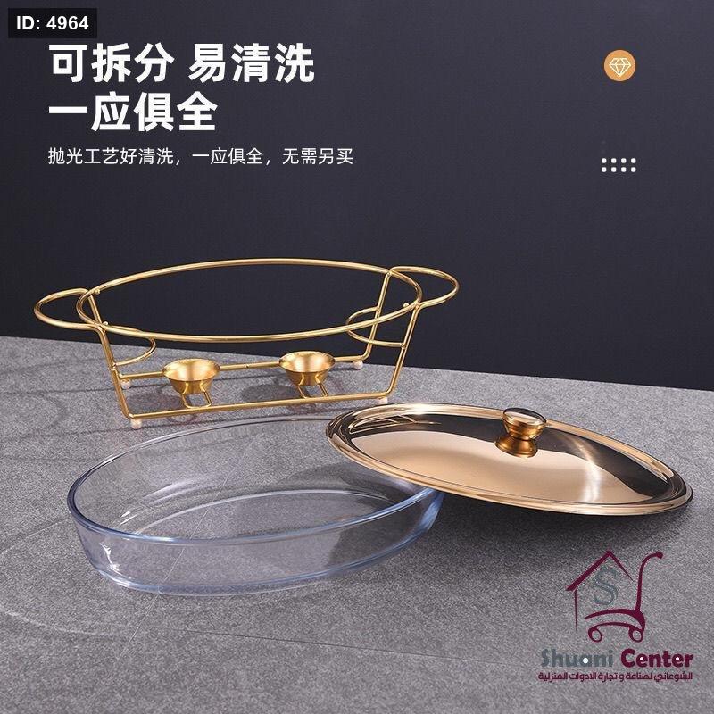 صنية بيركس حرارية مع ستاند تقديم طعام ذهبي فخمة لاصحاب الذوق الرفيع