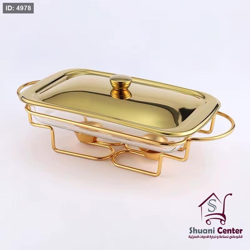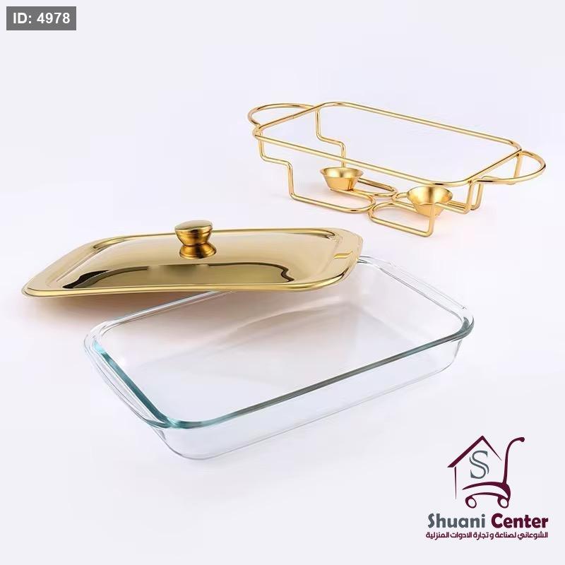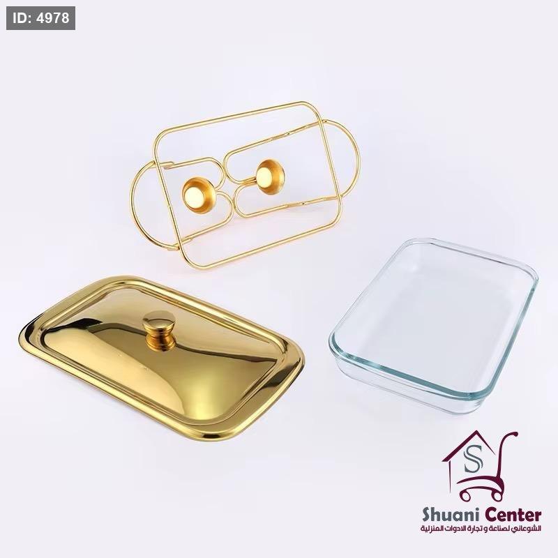 صنية بيركس مستطيلة مع غطاء ذهبي مميزة وانيقة وفخمة واضافة جميلة لطاولتك