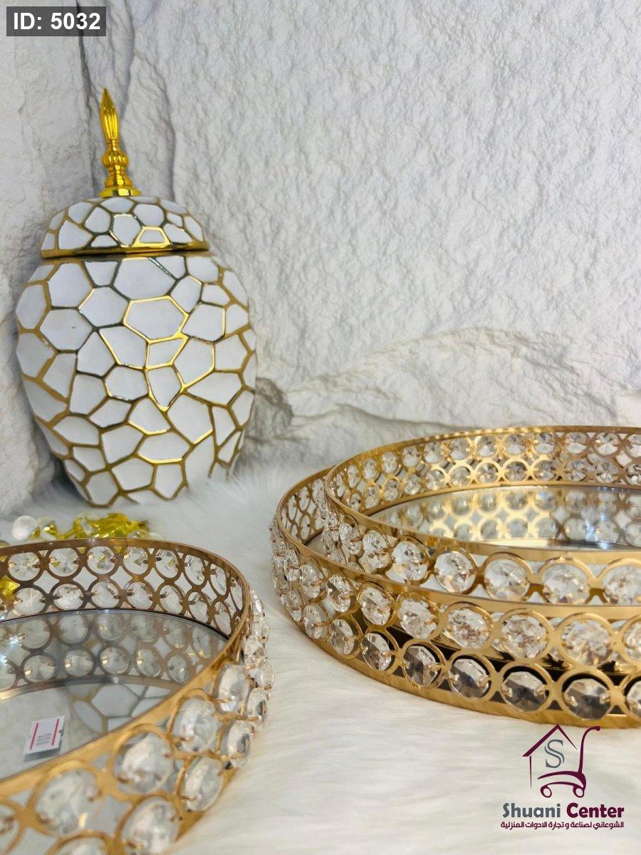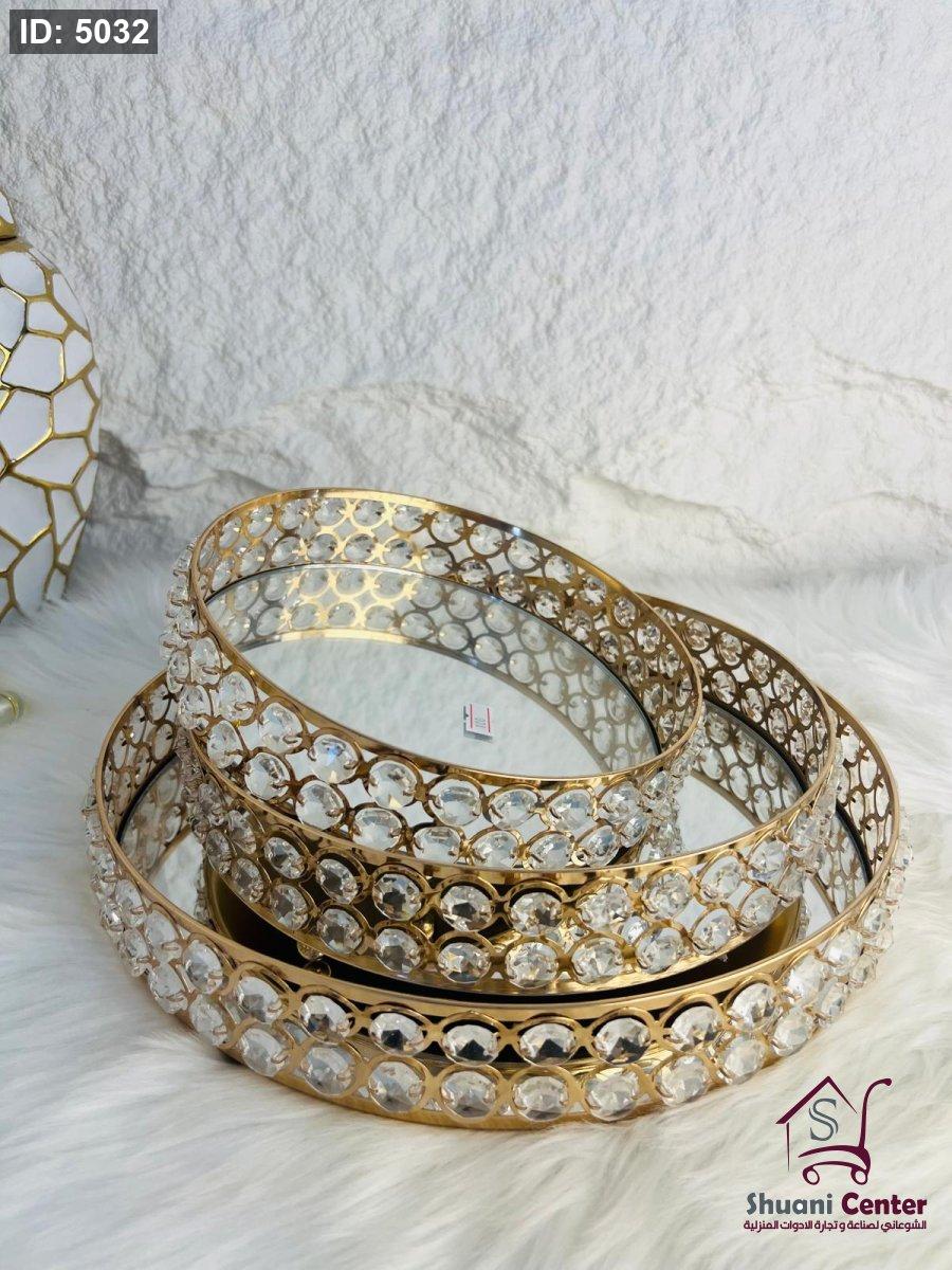 طقم صواني تقديم دائري كرستالي فخم وأنيق لاصحاب الذوق العالي
