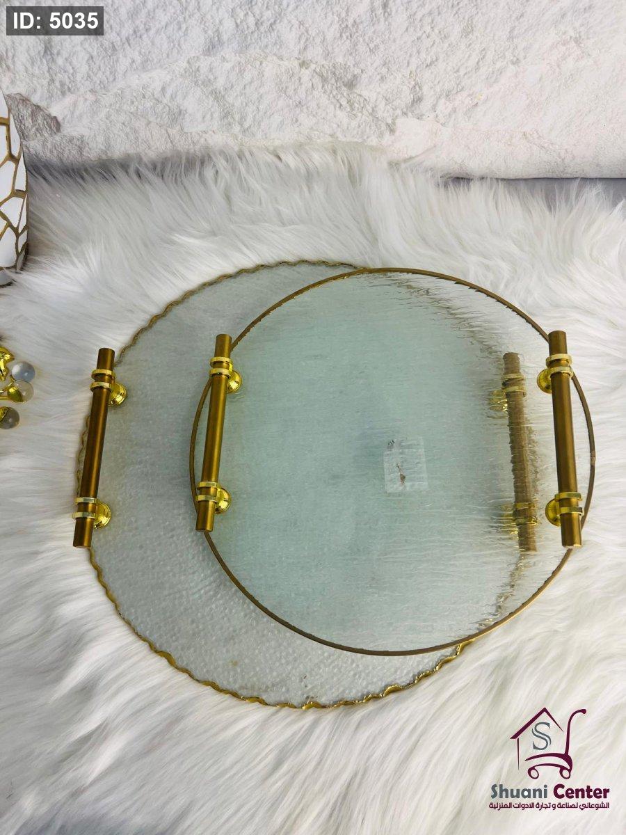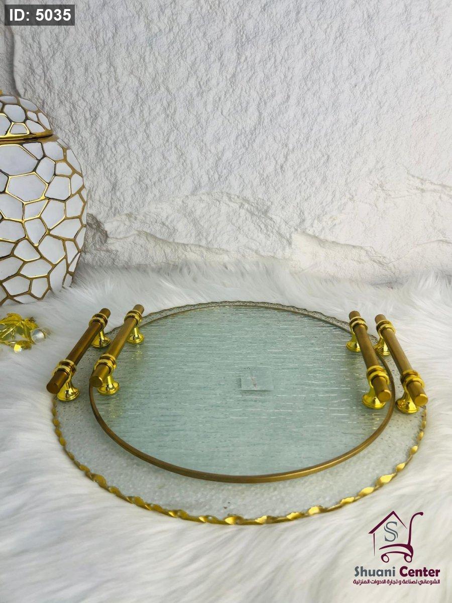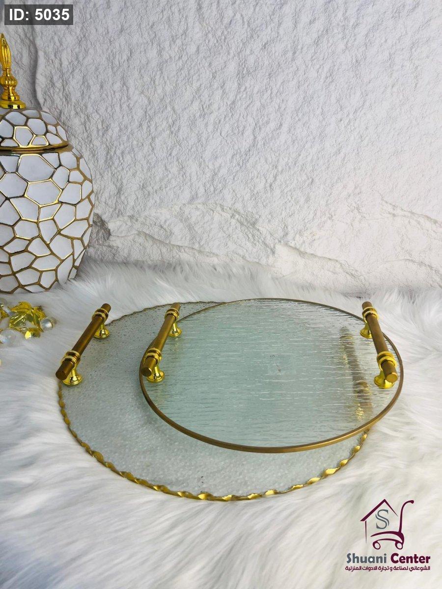 صواني تقديم زجاجية دائرية باطار ذهبي مميز وانيق وراقي جدا لاصحاب الذوق الرفيع